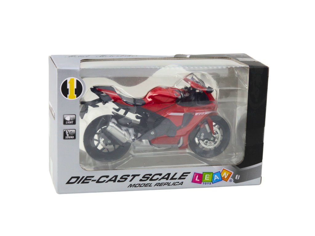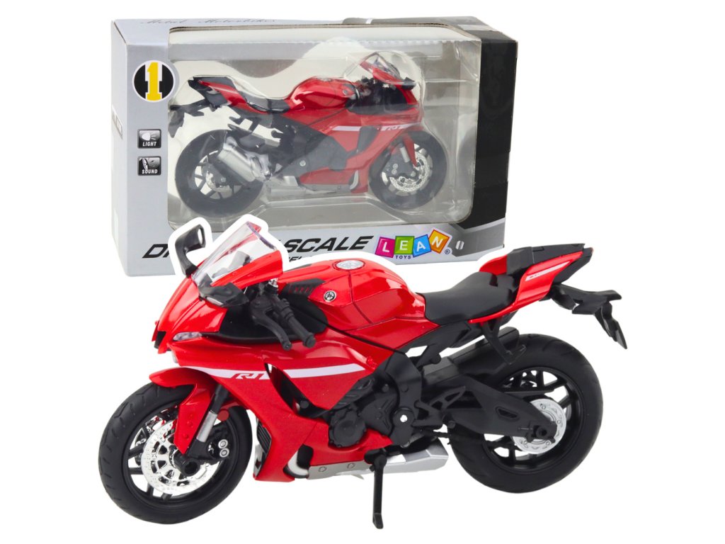 Sportovní motorka kovová světla zvuky červená R1 1:12