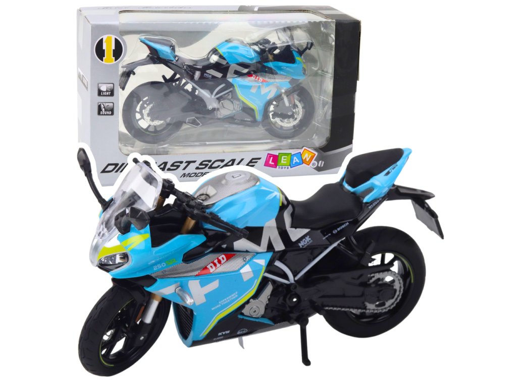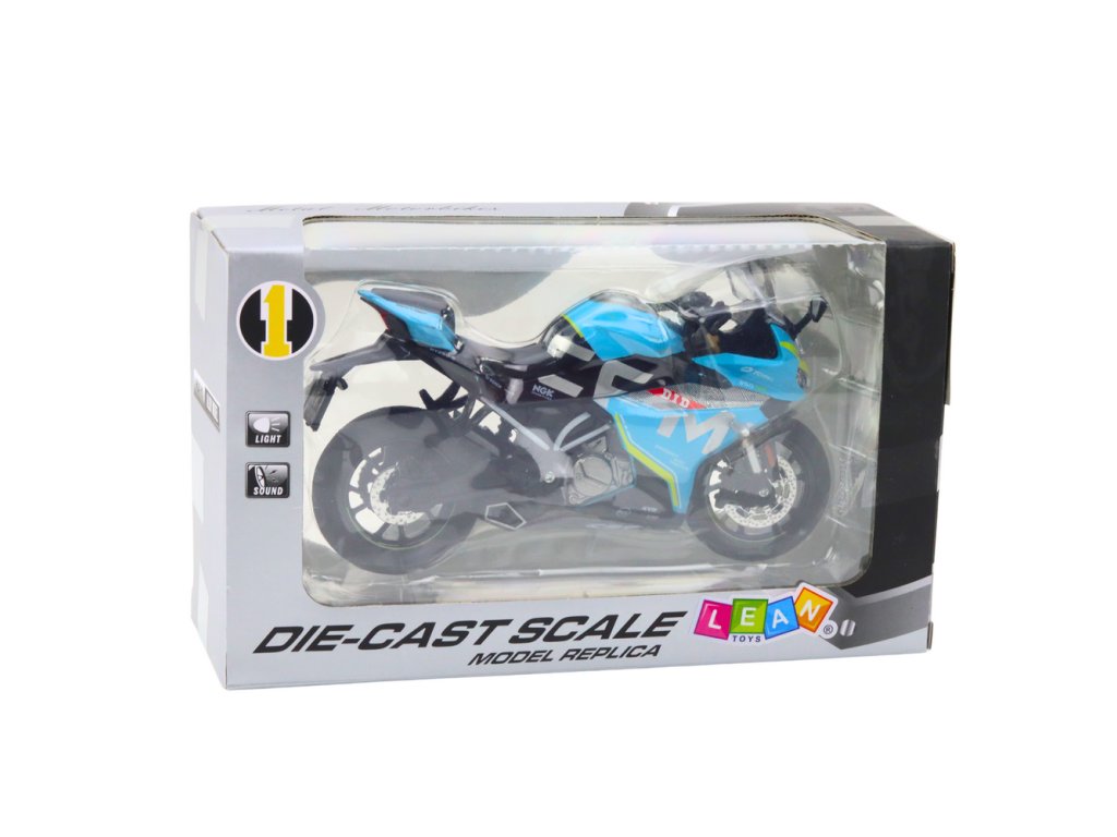 Sportovní motorka kovová světla zvuky modrá 1:12