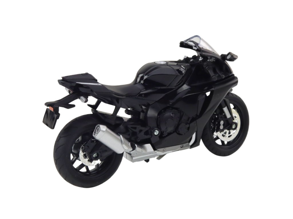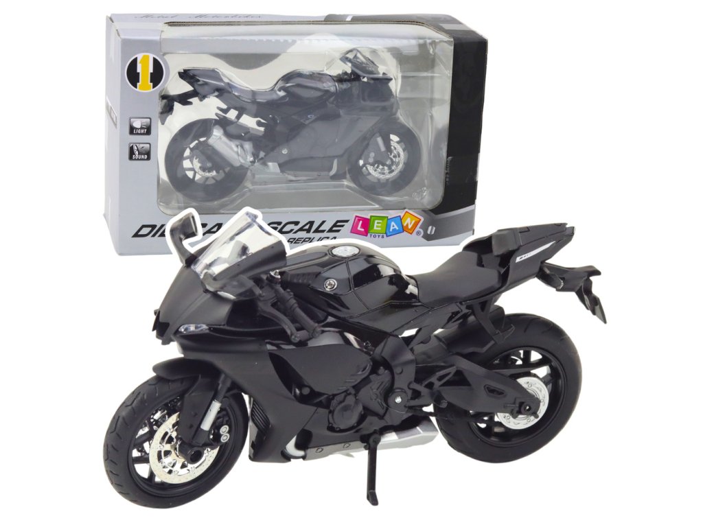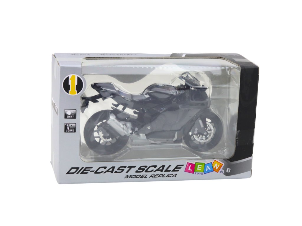 Model je vybaven světelnými a zvukovými efekty, které se aktivují díky napájení 3x AG13 (součástí balení). Další funkce zvyšují realističnost hry, díky čemuž motocykl vypadá a zní jako skutečné vozidlo. Dynamický, sportovní design v černé barvě je inspirován klasickými závodními motocykly, což mu dodává autentický charakter.