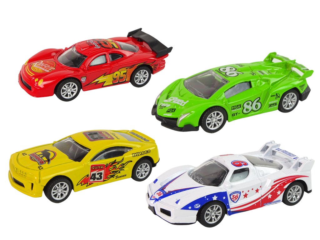 Sada obsahuje sportovní auta, která jsou vhodná pro více než jeden závod po místnosti. Každý model má výrazné samolepky a různé barvy. Vyrobeno v měřítku 1:43.