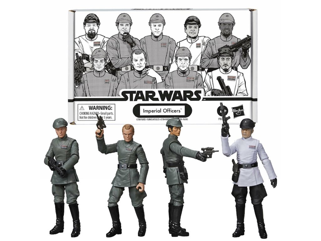 Čtyřdílná sada imperiálních důstojníků Star Wars F8302. Přidejte do své sbírky tyto čtyři jedinečné figurky, včetně dvou nových důstojnických portrétů: Admirála Pietta (s odznakem admirálské hodnosti) a – poprvé ve Vintage kolekci – generála Mottiho.