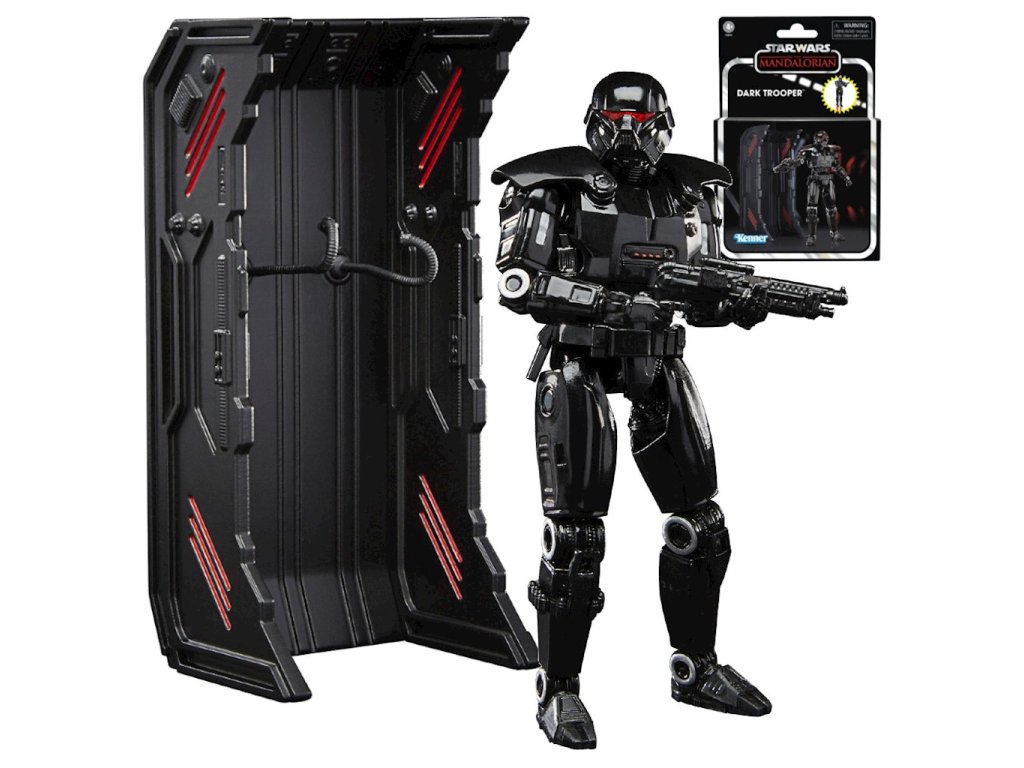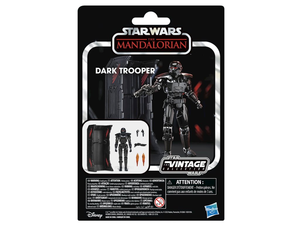 Star Wars Mandalorianská postava Dark Trooper F5895Oslavte dědictví Star Wars, akčního prostoru dobrodružná sága ze vzdálené galaxie s vysoce kvalitními Star Wars The Vintage kolekce postavy. Řada se vyznačuje vysoce kvalitním detailem a jedinečným zdobením schopnost postavit hračku v mnoha pozicích, které odrážejí boj hrdinů připravenost. Figurka 9,5 cm Dark Trooper představuje imperiálního bitevního droida v lesklém černém brnění. Sada obsahuje černý blaster pro boj a prvky, které po připevnění k botám napodobují tryskovou obuv.