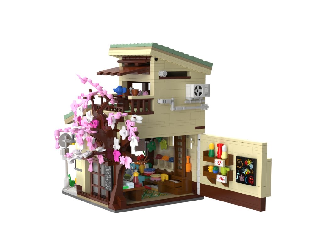 Jedinečný design umožňuje podívejte se dovnitř modelu . Obsahuje mnoho dekorativních prvků , jako jsou: cedule, lavička, knihy a květiny, dopravní značky, figurka kočky maneki-neko, rozkvetlá třešeň, jezírko koi a klimatizace. Model byl vytvořen z pozornost na detaily jak vně budovy, tak uvnitř. Má to pohyblivé prvky , např. posuvné dveře, výsuvná markýza, otevírací okno, skryté posezení. Navíc je vybaven: světla LED s 8 různými efekty , které dodají budově příjemnou atmosféru.