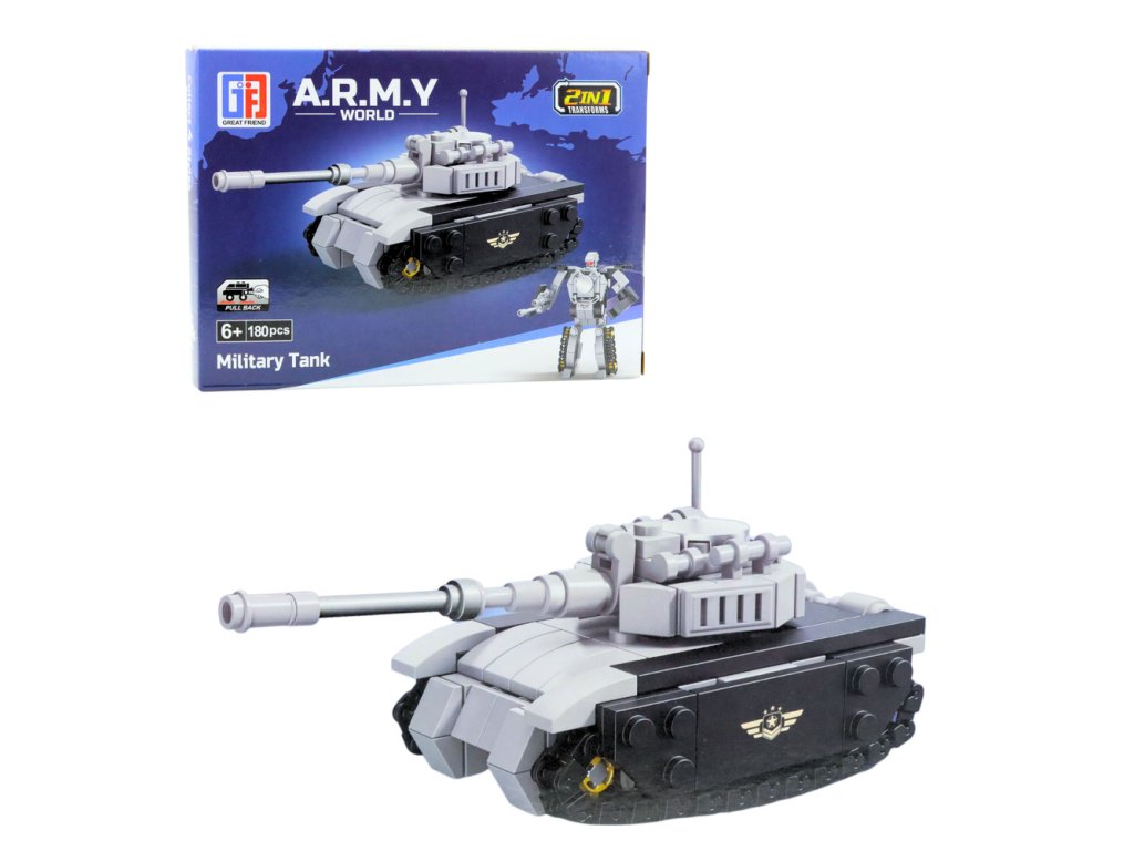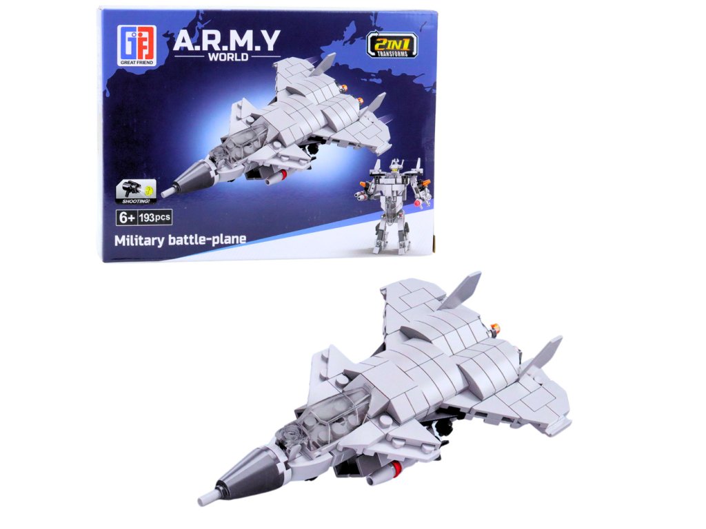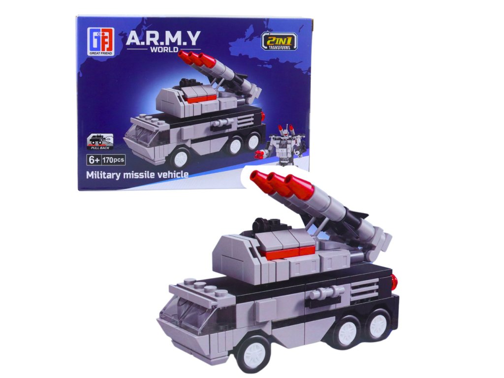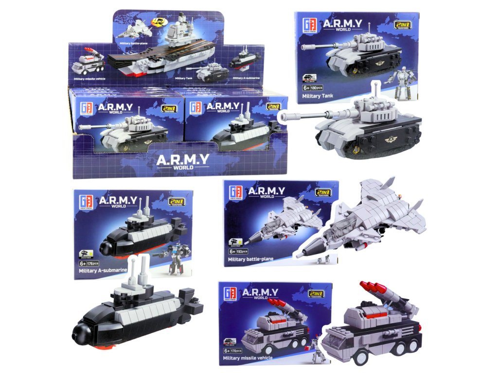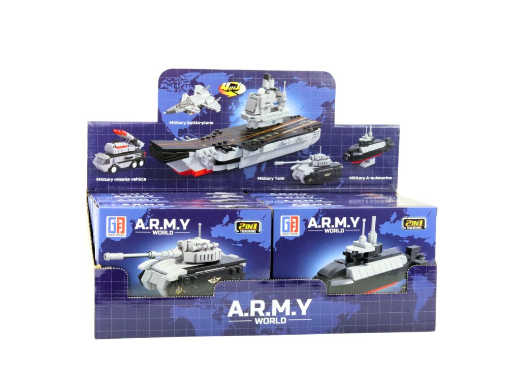 Stavebnice ARMY 2-IN-1 jsou jedinečnou možností pro děti fascinované armádou, bojovými vozidly a stavbou vlastních modelů. Tato sada vám umožní postavit různá vojenská vozidla, jako je tank, bojové letadlo, loď a odpalovač raket, a dokonce vytvořit působivého robota. Je to zábavná hra, která rozvíjí představivost a obratnost a zároveň poskytuje příležitost zahrát si vzrušující vojenské scénáře.