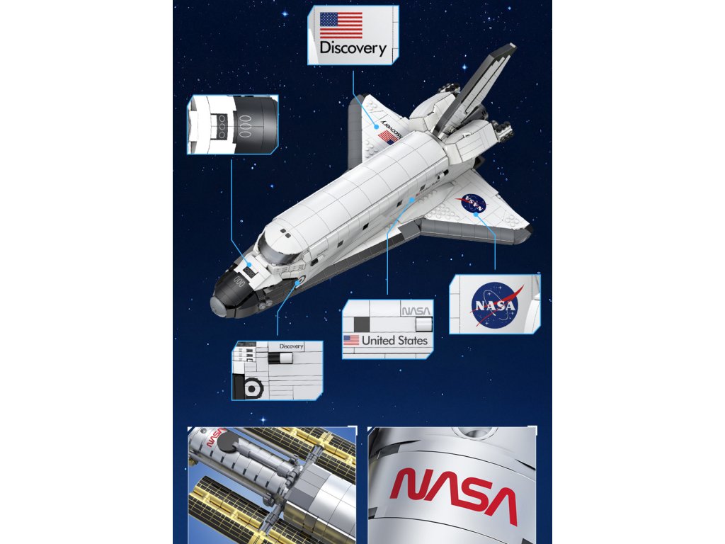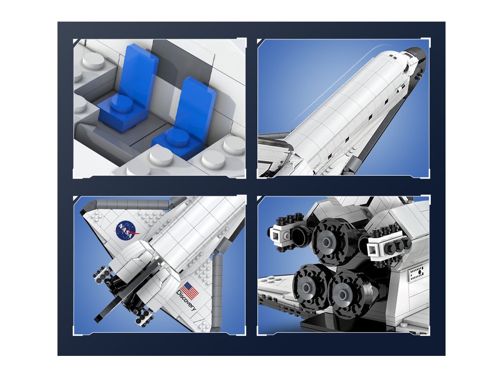 Tato jedinečná sada 1 827 dílků vám umožní postavit detailní repliku raketoplánu v měřítku 1:80 . Vytvořeno ve spolupráci s NASA a pod dohledem designéra Erica Traxe, každý detail zachycuje autentický vzhled raketoplánu Discovery – vlajkové lodi, která dokončila nejvíce misí a vynesla do vesmíru nejvíce astronautů.