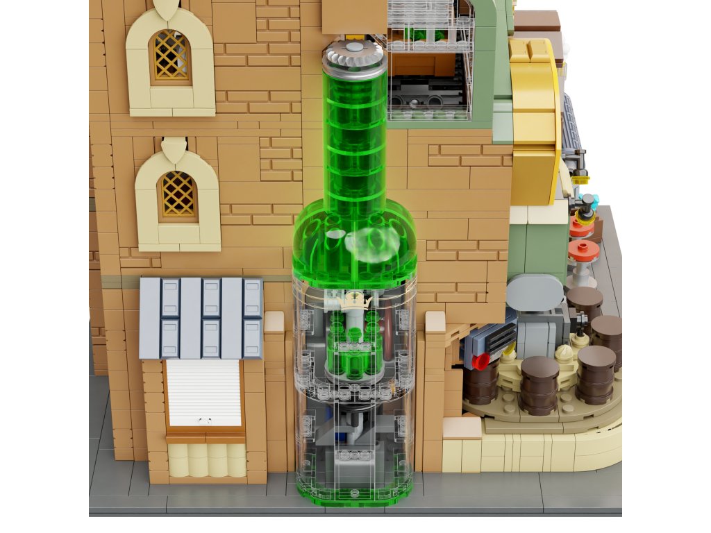 Budova má detailní povrchovou úpravu s prvky inspirovanými tradičními motivy . Navíc pohyblivé prvky, jako je montážní linka, výtah a otevírací dveře, dodávají stavbě realističnost. Krásné figurky, jako je majitel, zaměstnanec a zákazník, stejně jako dekorativní detaily, dělají každý kus jedinečný.