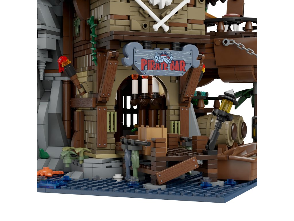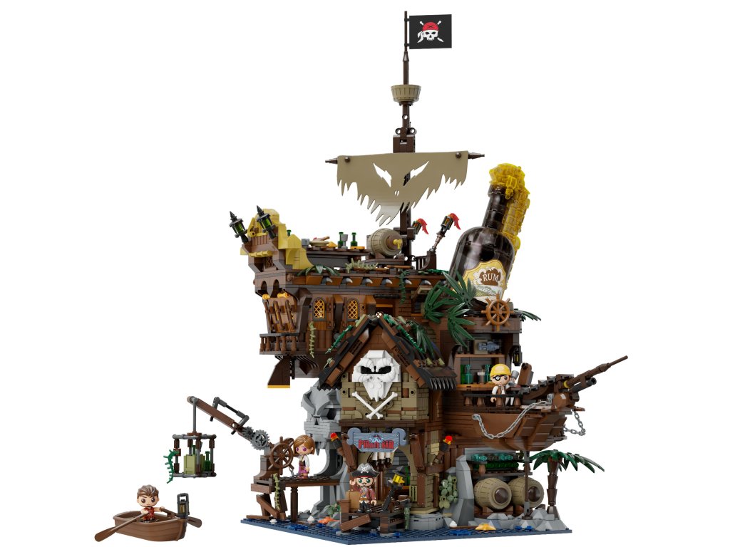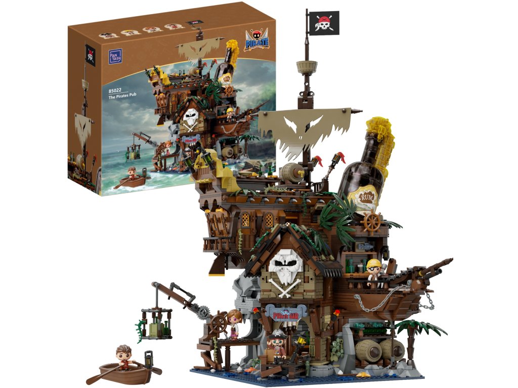 The Pirate Pub je unikátní sada kombinující konstrukční prvky s osobitým pirátským designem. Tento produkt, zaměřený na vášnivé fanoušky mořeplavby a hledače dobrodružství, vám umožní sami vybudovat funkční hospodu s něčím pro každého.