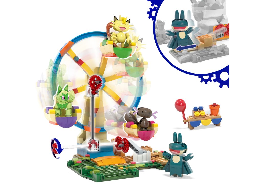 Mega Construx Pokémon Ruské kolo je zárukou hodin kreativní zábavy, vzrušujících pohyblivých scén a nezapomenutelných dobrodružství stvoření s vašimi oblíbenými postavami!