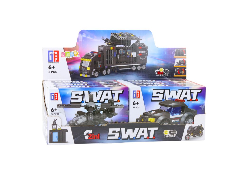 Stavebnice SWAT 8-IN-1 jsou ideální pro děti, které milují stavět, vytvářet a hrát realistické scénáře. Sada obsahuje různá vozidla a dopravní prostředky používané speciálními jednotkami SWAT, jako jsou terénní vozidla, motocykl, loď, vrtulník a nákladní automobil. Děti se tak mohou vžít do role důstojníka a zažít při hře vzrušující dobrodružství.