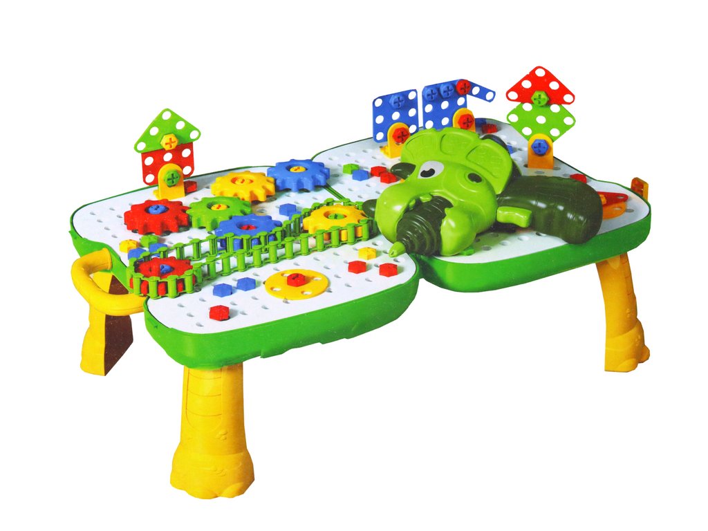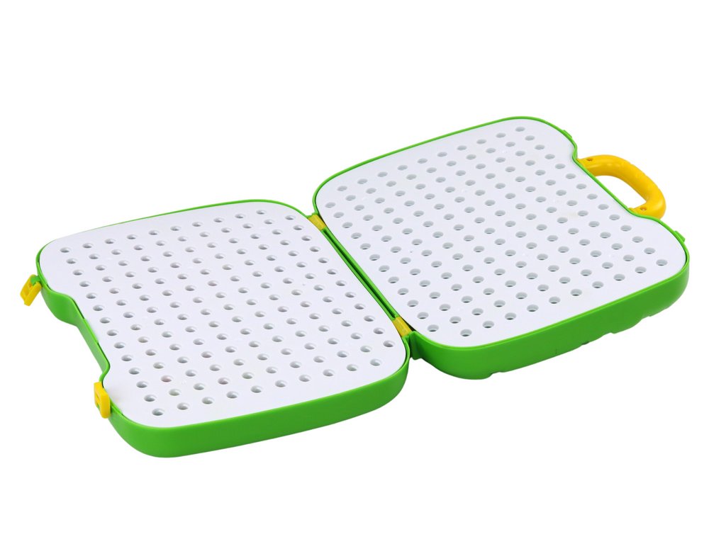 Sada navíc obsahuje geometrické obrazce v různých tvarech, jako jsou kruhy, čtverce, trojúhelníky atd. Tyto prvky ještě více zpestřují hru a umožňují vytvářet různé struktury a prostorové objekty. Díky ozubeným kolům stolu mohou děti experimentovat s mechanismy, vytvářet vozidla, budovy a další zajímavé stavby.