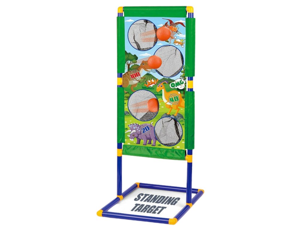 Srdcem setu je barevný, stojací štít o výšce 93 cm, vybavený třemi tečkovanými otvory, které byly umístěny v různých výškách. Jejich rozdílná velikost a poloha znamená, že dítě může trénovat jejich přesnost na různých úrovních obtížnosti. Štít je vyroben z lehkých, ale odolných materiálů a jeho konstrukce je stabilní, snadno se skládá a skladuje.