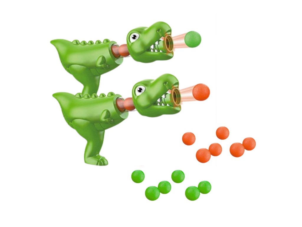Sada obsahuje dva odpalovače ve tvaru zelených dinosaurů, které fungují na principu stlačeného vzduchu - stačí stisknout a míček vystřelí energií směrem k cíli. Obsluha je intuitivní a bezpečná, nevyžaduje použití baterií ani nabíjení. Odpalovače jsou přizpůsobeny dětským ručkám, lehké, šikovné a umožňují naložit až 8 měkkých míčků najednou, což výrazně zvyšuje plynulost hry a umožňuje vyhnout se neustálému vyrušování.
