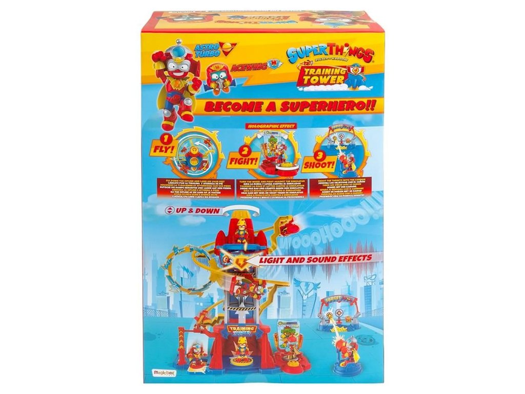 Dětská tréninková věž Kazoom je akční sada, která posouvá zábavu ve městě Kaboom na novou úroveň! S touto jedinečnou věží mohou děti Kazoom Kids zdokonalovat své dovednosti v akrobatickém létání a zasahování cílů. Umístěte svého hrdinu na vrchol věže a sledujte, jak sjíždí dolů při velkolepých kaskadérských kouscích doprovázených zvukovými a světelnými efekty. Ale to není všechno - po úspěšných letech si mohou procvičit střelbu na terč ve speciálních zónách a vyzkoušet své dovednosti v boji zblízka proti hologramovému Padouchovi.Jedinečné vlastnosti sady:
