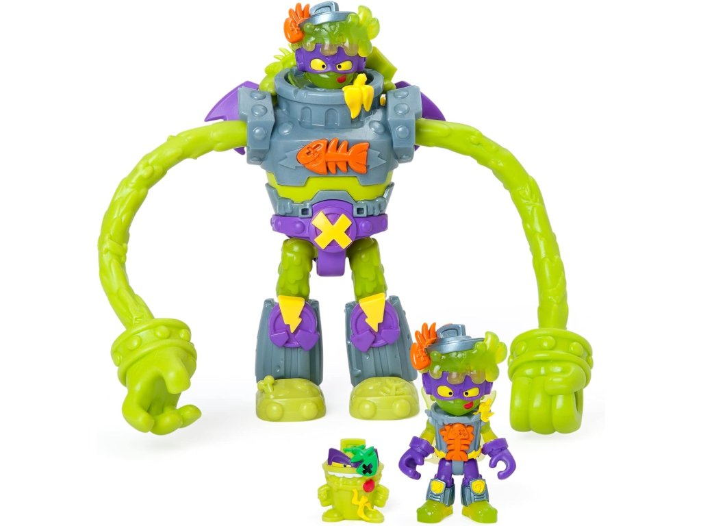 - 1 Robo‑Superbot Trasher – vícebarevný robotický padouch s živými, kontrastními barvami a flexibilními dlouhými pažemi.