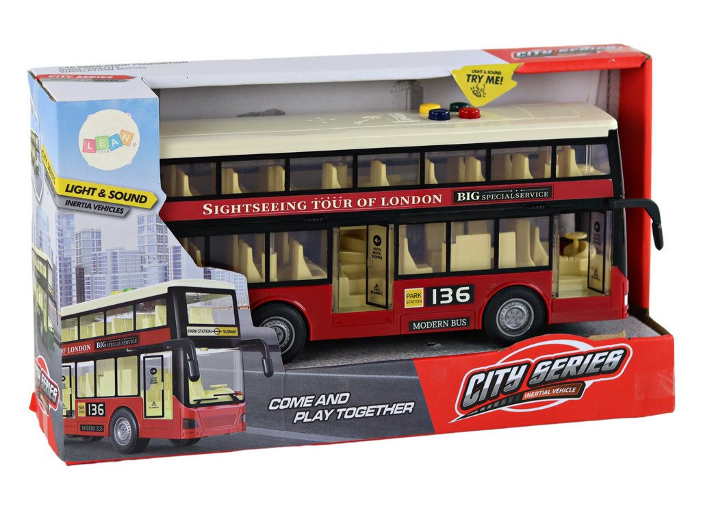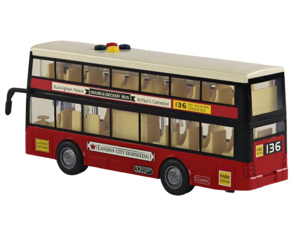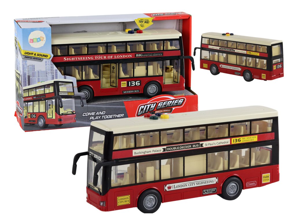 Autobus je natřený červenou barvou, která okamžitě upoutá pozornost dětí. Je vybavena třecím pohonem, což znamená, že ji dítě může snadno uvést do pohybu tlačením po povrchu. Je to nejen skvělá zábava, ale také rozvíjí motoriku.