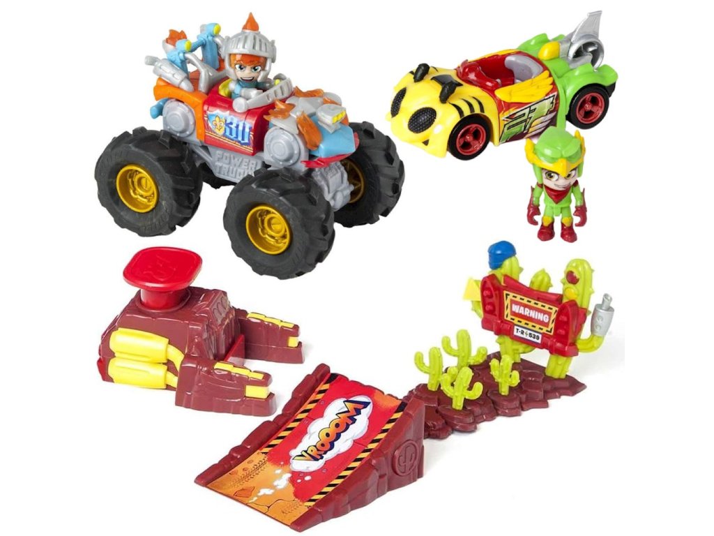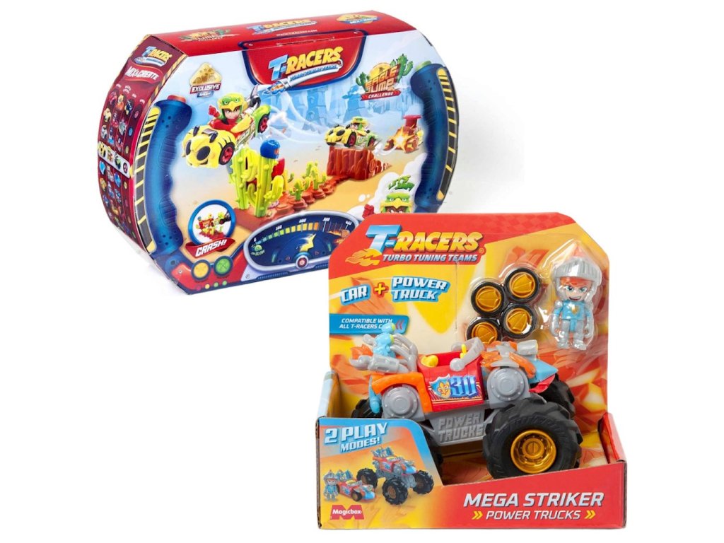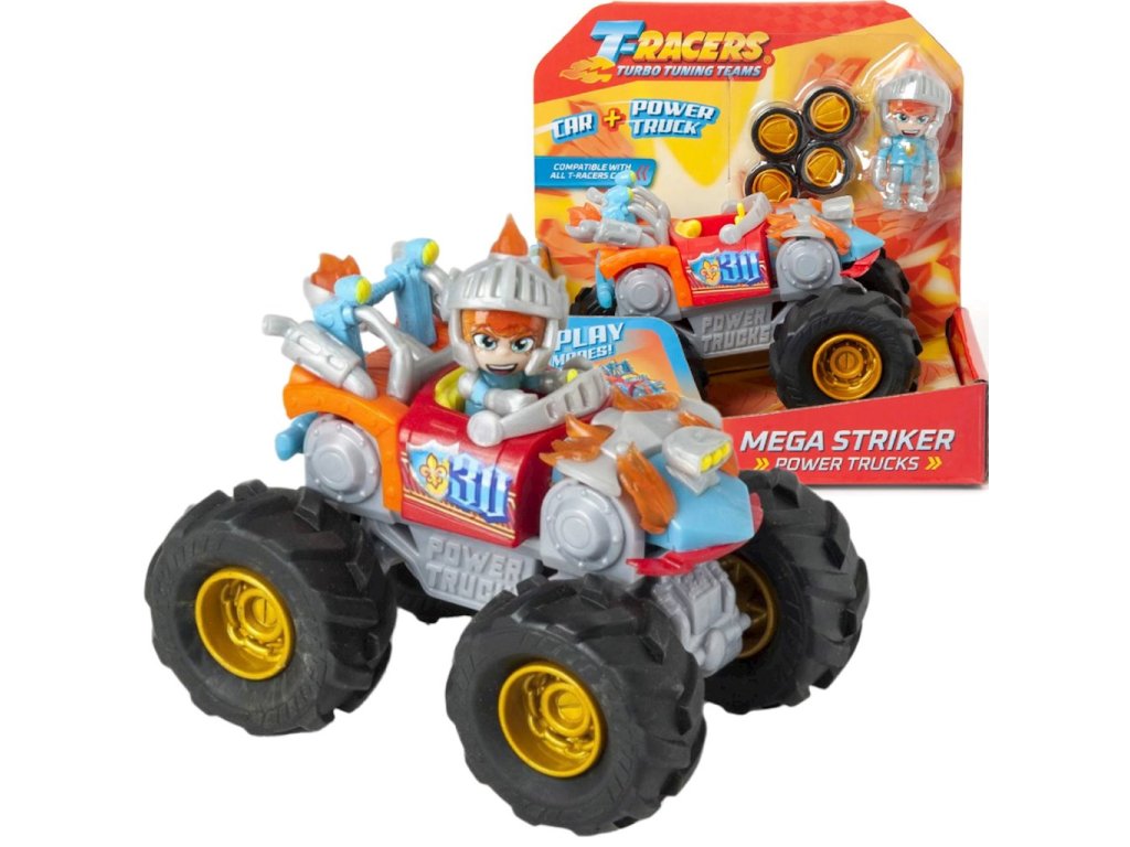Proměňte svůj T-Racer na Power Truck. Namontujte svůj T-Racer na základně a přeměňte jej v super vozidlo připravené na jakoukoli výzvu! S T-Racers Power Trucks je závodění ještě napínavější! Sada obsahuje čtyři vyměnitelná malá kola, díky kterým dokážeme přeměnit náklaďák na závodníka!