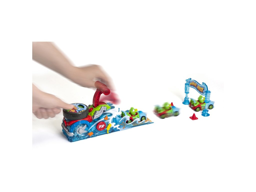 T-Racers Wave Race Challenge Launcher + Rider Vehicle 16756Surfujte na největších a nejnebezpečnějších vlnách ve Wave Race Výzva! Budete schopni využít sílu svého výstřelu zaujmout první místo, nebo ztratíte rovnováhu a budete pohlceni rozbouřená moře? Nastavte si Croco Drive a připravte se na precizní udeř z Wave Race Launcher! Červená, zelená, modrá... Pozor kvůli barvám, nebo skončíte na dně oceánu!