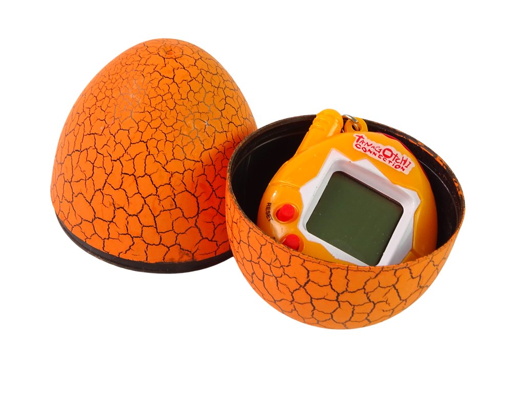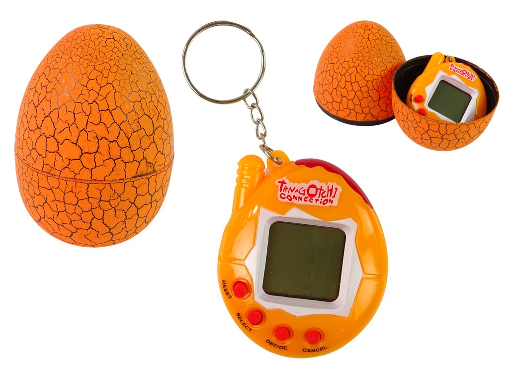 Poznámka: Tamagotchi se skrývá ve velkém oranžovém vajíčku a uvnitř je malý elektronický mazlíček, o kterého se budete starat!