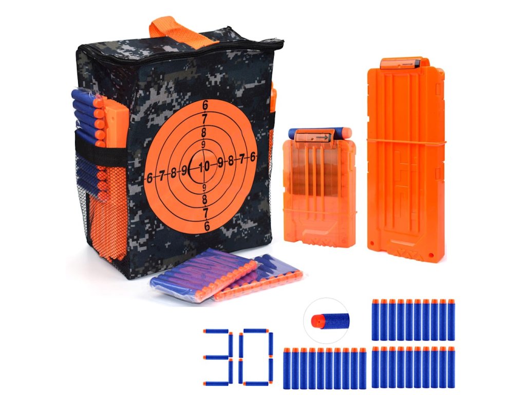 Taška terč pro příslušenství Nerf + 2x zásobník (na 6 a 12 šipek) + 30 šipek Nerf