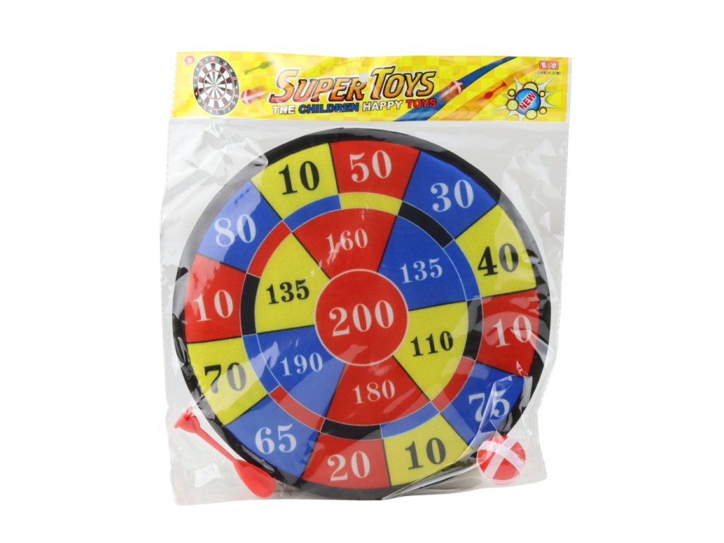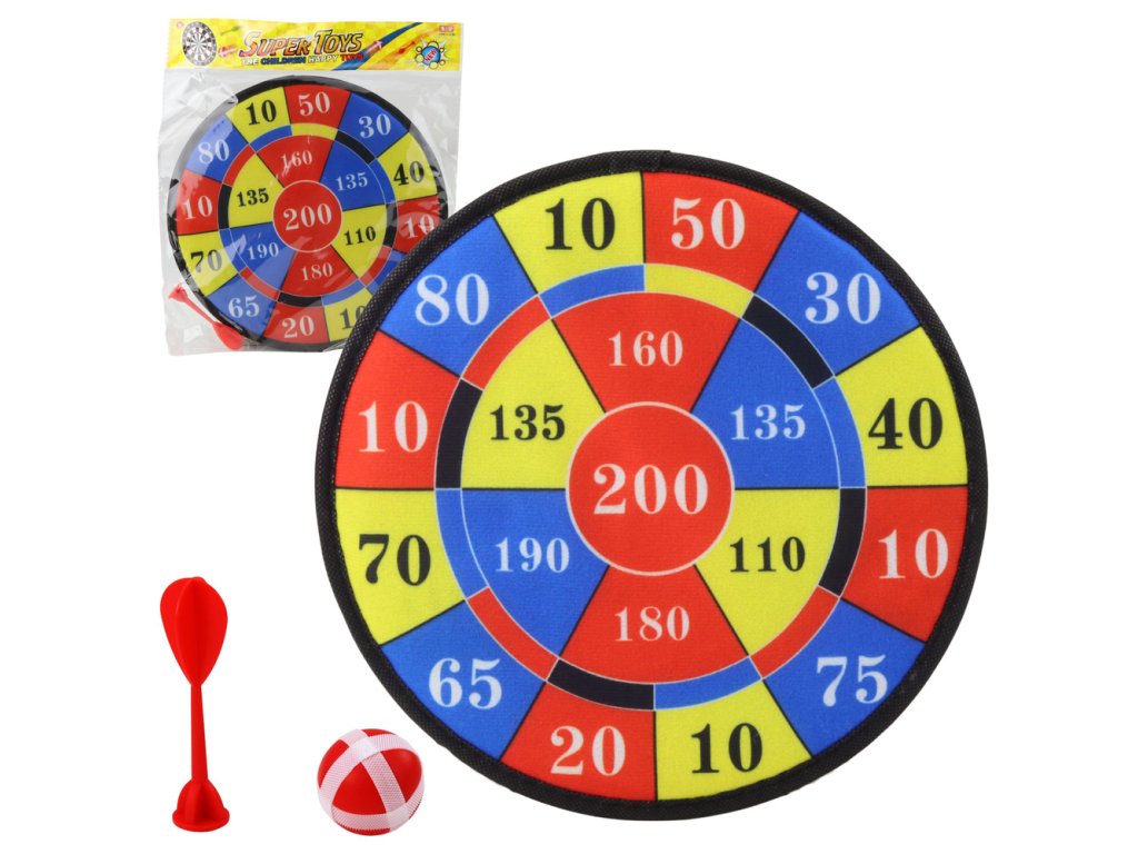 Terč na šipky s bodováním, výukové šipky, míčky, hra na dovednosti