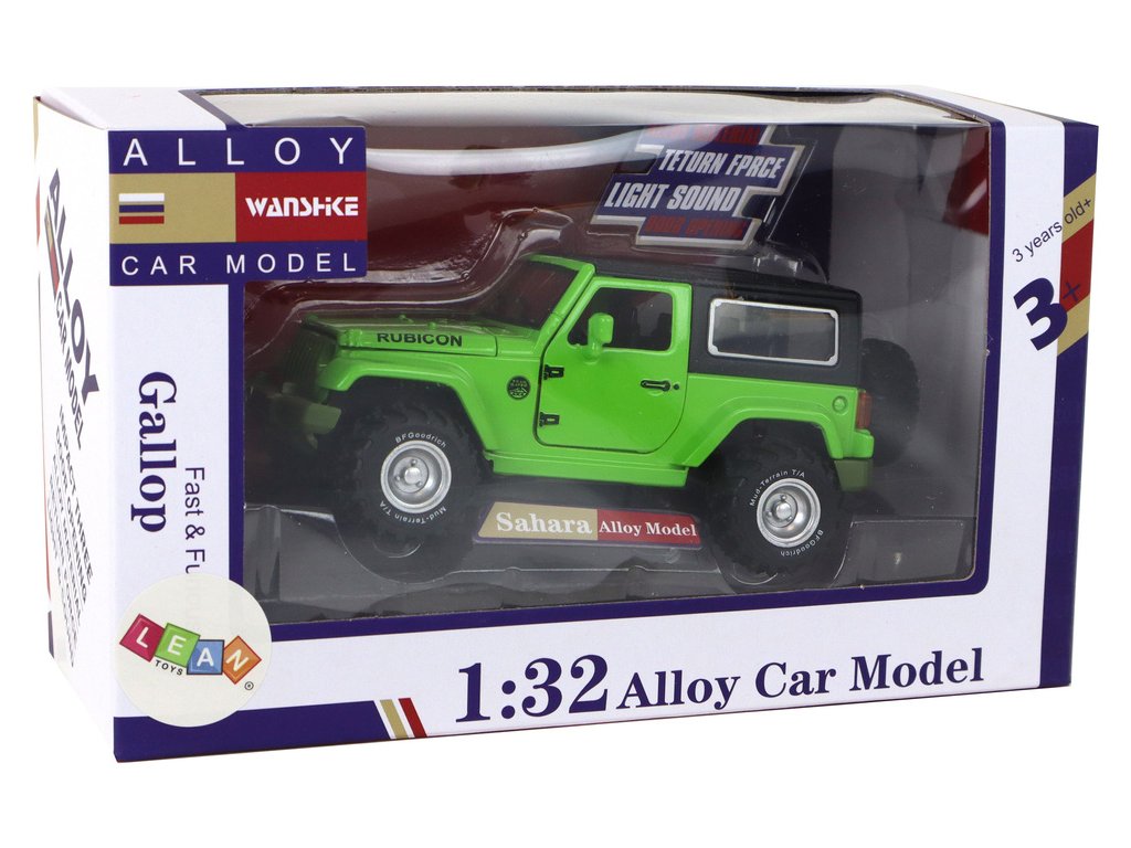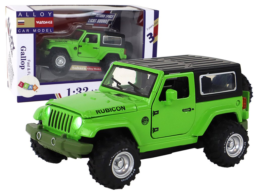 Navíc je toto auto vybaveno bateriemi (3 x 1,5V AG13 - součástí dodávky), díky nimž se při nabíjení vozidla rozsvítí světla a zní charakteristické pro skutečné terénní auto, což dodává hře na autentičnosti a ještě větší zábavě. . Měřítko 1:32 umožňuje přesnou reprodukci detailů, což z auta dělá nejen hračku, ale i sběratelský kousek. Rozměry balení jsou 20 cm x 12 cm x 9 cm.