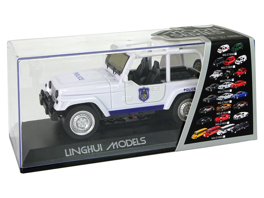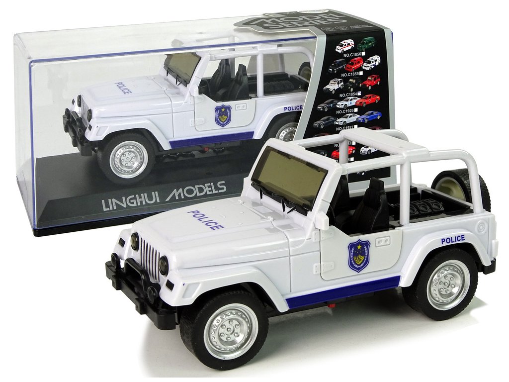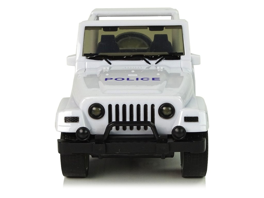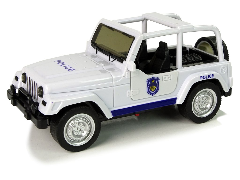 Krabička, ve které se dodává, bude vypadat pěkně na vaší poličce. Má zpětný pohon a je vyroben z plastu s pryžovými pneumatikami. Předek a bok bílého vozu mají modré vzory, nápisy POLICE a pruhy. Otevřený vůz umožňuje vidět v každém detailu interiér vozu. Navíc má otevírací přední dveře a rezervní kolo. Hračka udělá radost batoleti a možná i dospělému. Probudí ve vašem dítěti zvědavost na svět kolem něj a pomůže mu rozvíjet vlastnosti, jako je přesnost a vynalézavost.