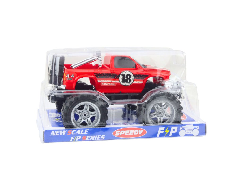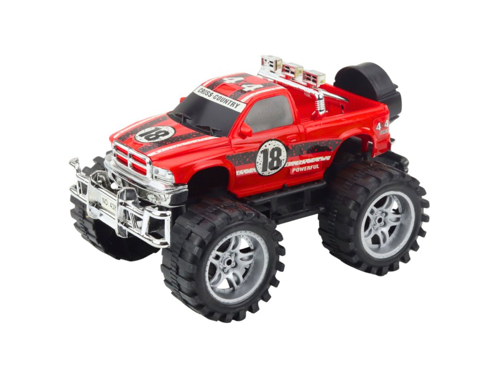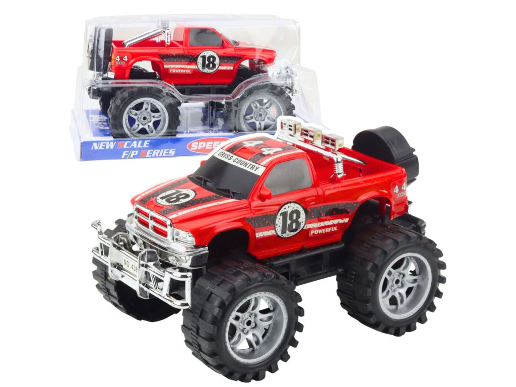 Terénní vozidlo s pohonem zadních kol a velkými koly, červené 27 cm