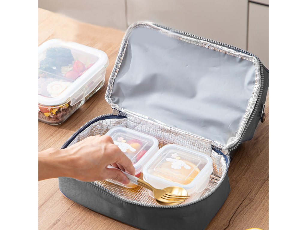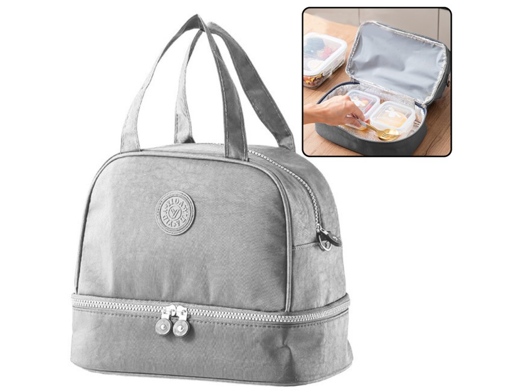 Taška je vyrobena z vysoce kvalitních materiálů, které jsou odolné, odolné vůči každodennímu opotřebení a snadno se udržují v čistotě. Praktické zipy umožňují rychlý přístup do interiéru. Stříbrná barva a moderní a elegantní design činí tašku univerzální pro každého uživatele - bez ohledu na věk. Je dokonalým doplňkem pro každého, kdo se chce funkčním a stylovým způsobem postarat o jídlo mimo domov.