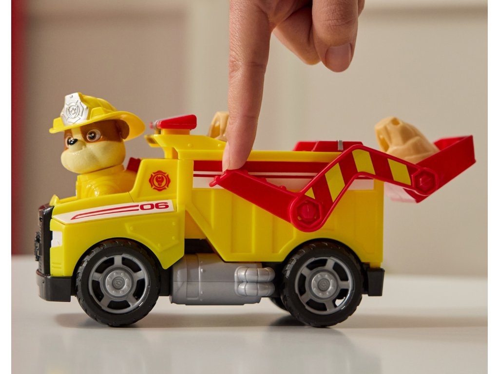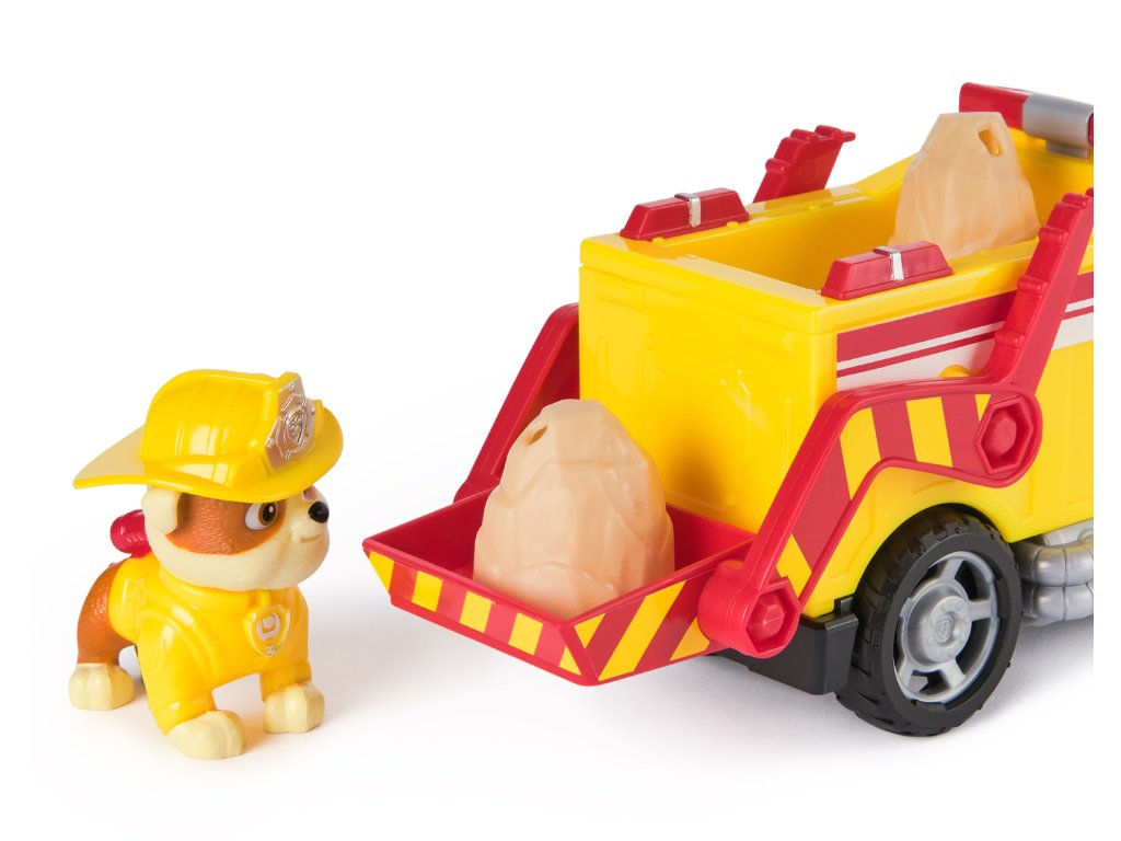 Tento produkt je model stavebního vozidla Rubble , jedné z postav oblíbeného seriálu a filmu. Je vyrobena z vysoce kvalitního plastu, díky čemuž je pevná a odolná. Vozidlo připomíná standardní vyprošťovací vůz, ale je vybaveno červeným odpalovacím zařízením na zádi. Jednoduše tam položte jeden z přiložených kamenů a stiskněte páku.