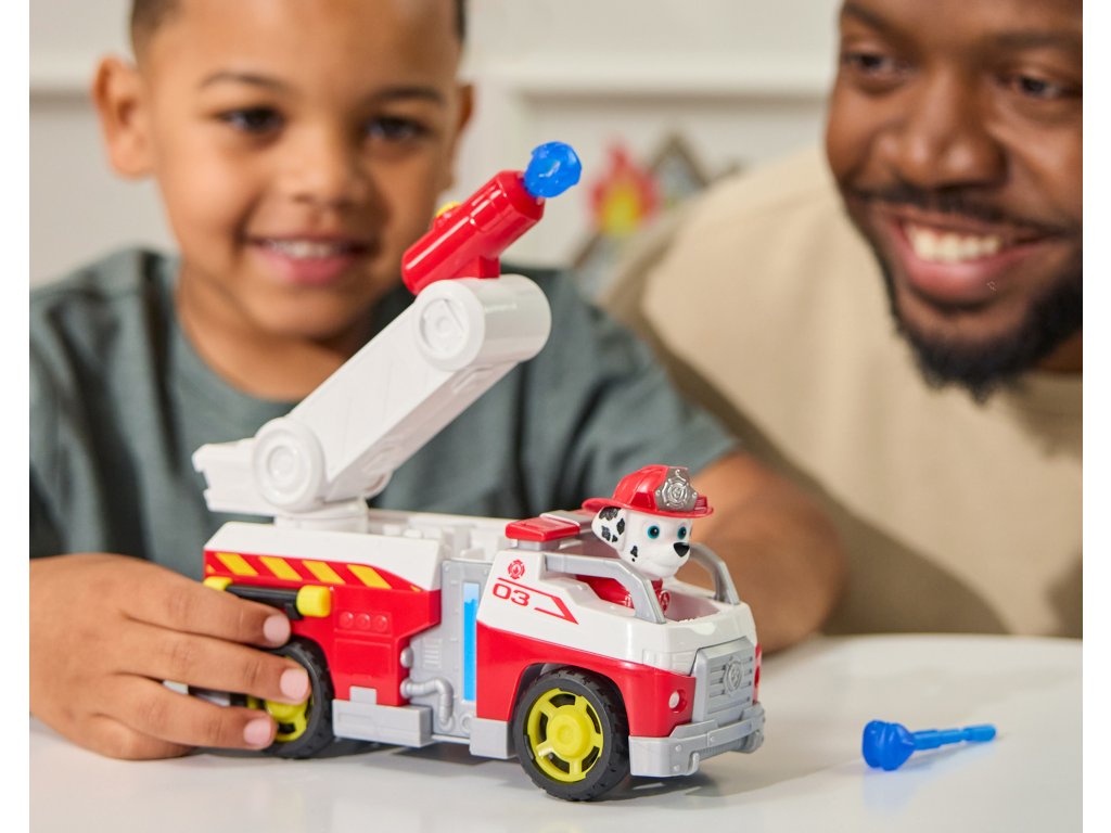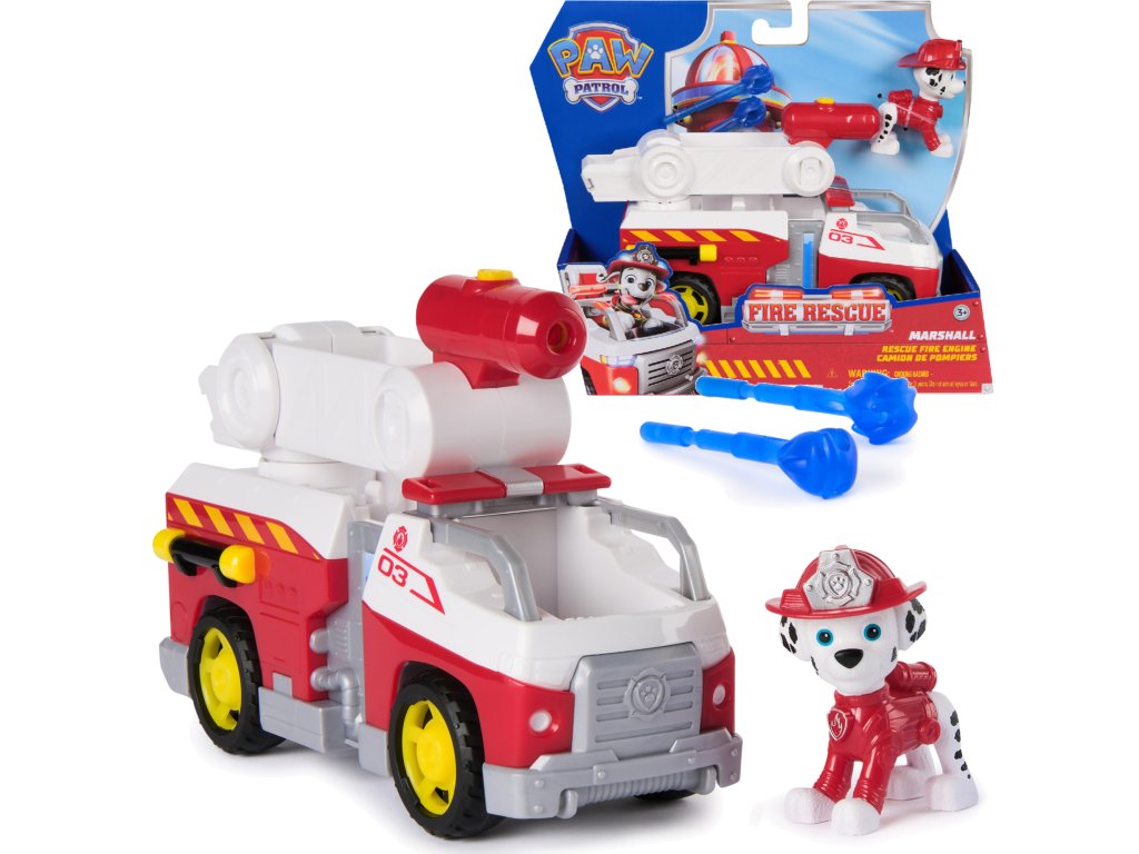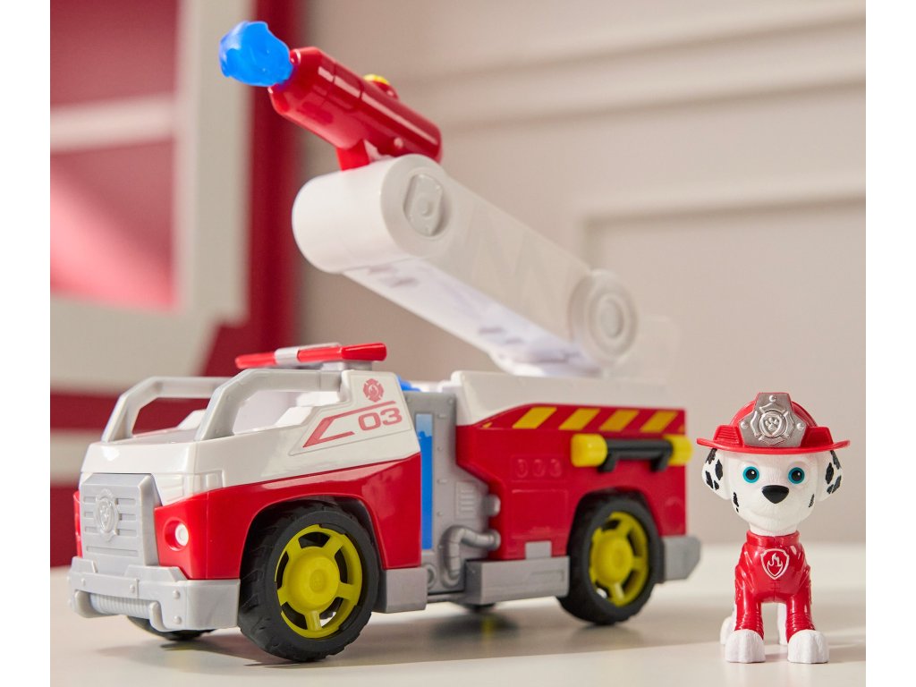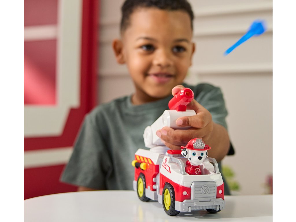 - Sada obsahuje: Figurka štěněte Marshalla a hasičské auto, 2 projektily