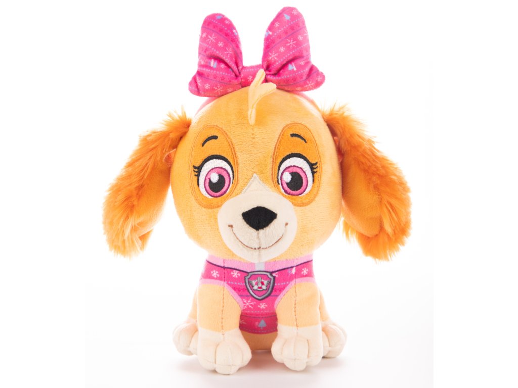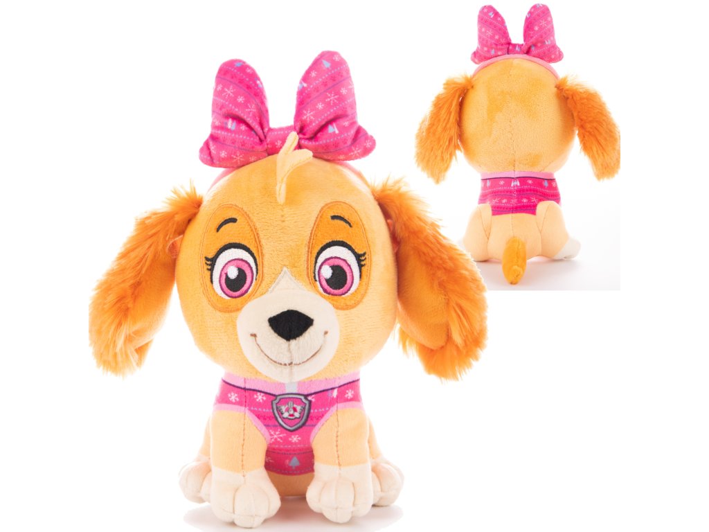Plyšová hračka zobrazuje Skye, rozkošného psa z kresleného seriálu Tlapková patrola , oblečeného ve vánočním kostýmu. Plyšová hračka měří přibližně 28 cm a je vyrobena z měkkého, příjemného materiálu na dotek. Skye má výrazné růžové oči a široký, přátelský úsměv.
