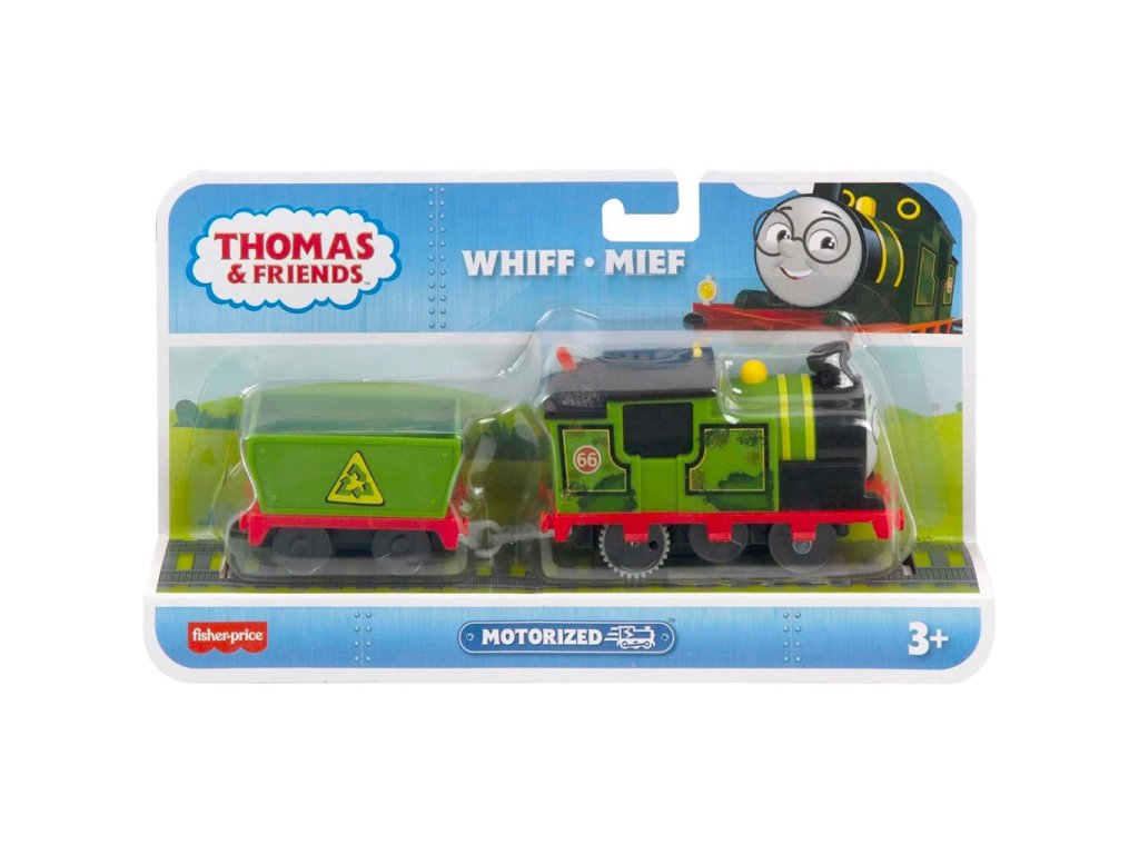 Motorizovaný motor Whiff HMC23 Thomas & FriendsMalí železničáři se mohou vydat na dobrodružství se svou oblíbenou postavičkou Thomas & Friends s tímto motorizovaným motorem od Fisher-Price! Přepněte spínač na střeše motorizovaného motoru a pošlete Whiffa a jeho vůz na zábavnou jízdu na jakékoli dráze Thomas & Friends, kromě těch v dřevěné sérii. Sbírejte další motorizované motory Thomas & Friends, vytvořte si vlastní železnici a zažijte jedinečná dobrodružství na ostrově Sodor. (Sady kolejí a další motory se prodávají samostatně).