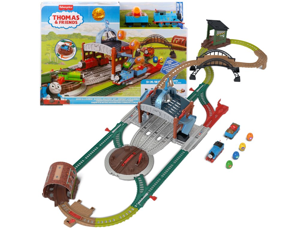Sada Thomas & Friends - Load & Launch Barrel Delivery Track Set je jedinečná nabídka vytvořená k oslavě 80. výročí kultovní série. Tato velká vláčkodráha o délce přibližně 5,5 m umožňuje dětem vžít se do role železničářů a zažít nezapomenutelná dobrodružství na ostrově Sodor.