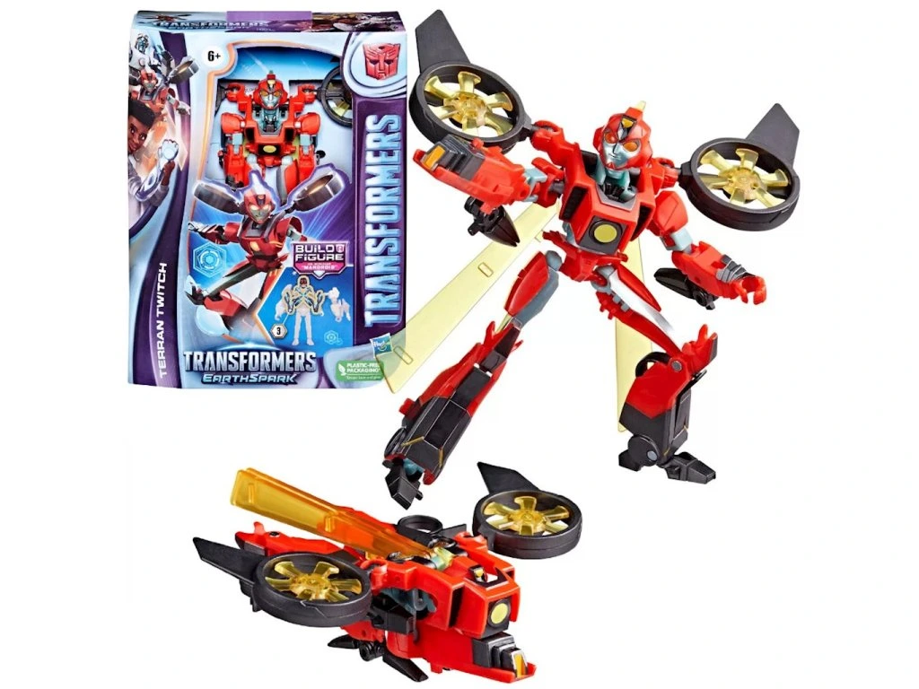 Transformers: EarthSpark představuje novou generaci Transformerů - robotů, kteří se narodili na Zemi. Spolu s lidmi, kteří je přivítají ve svém domově a starají se o ně, nečekaně nově definují význam slova „rodina“.Figurky třídy Deluxe zobrazují známé postavy ze série a umožňují i vám žít se svými oblíbenými postavami, jako je například Terran Twitch! Přibližně 12,5 cm velkou figurku lze ve 12 krocích přeměnit z režimu robota na alternativní režim.