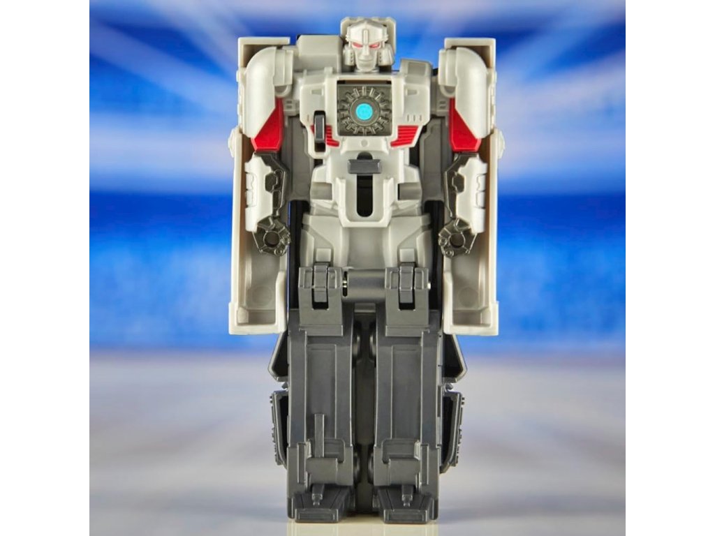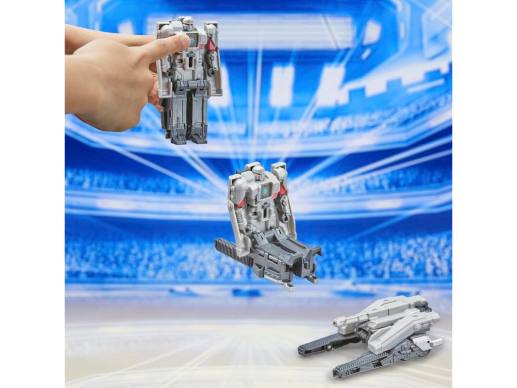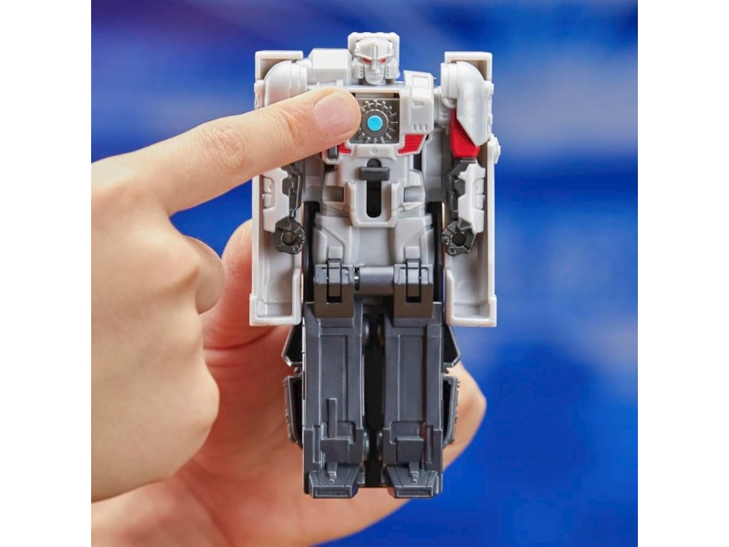 • Posuňte hrudní plát na figurce Transformers, stiskněte ozubené kolečko a figurka se automaticky přemění z robota na kybertronský tank v 1 kroku