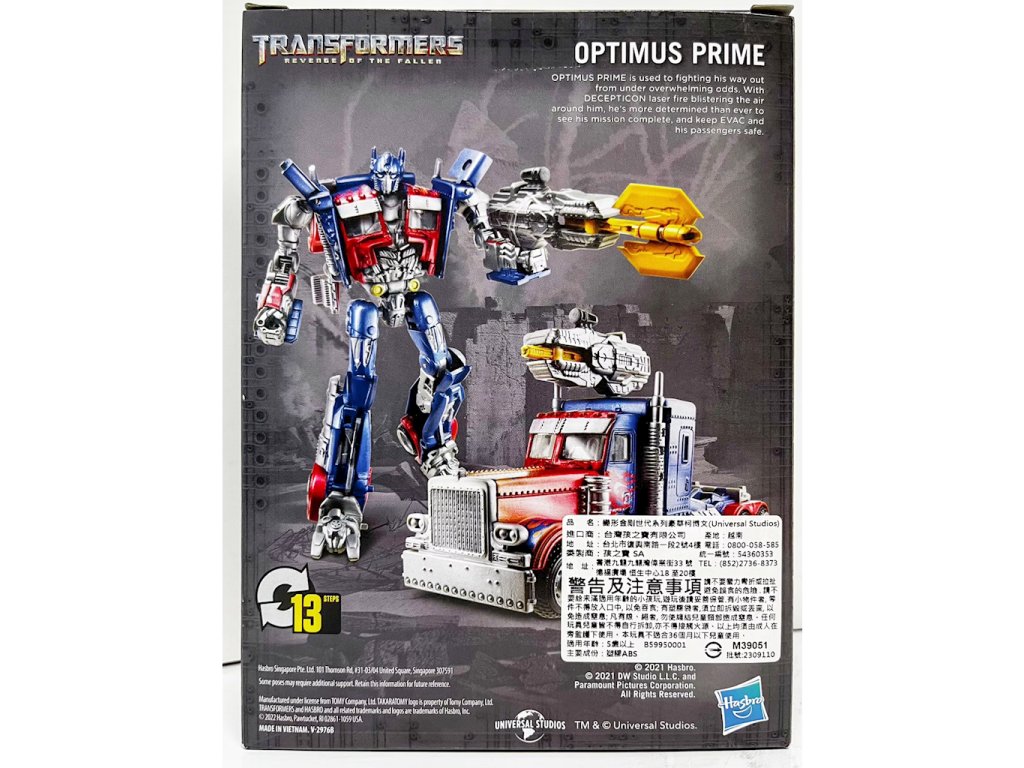 Transformers Revenge of the Fallen Optimus Prime Figure B5995Optimus Prime je legendární vůdce Autobotů. V jeho srdci hoří oheň loajality k lidstvu a bojem s Decepticony se snaží ochránit svět před zničením. Tato figurka je inspirována nejnovějším filmem Transformers - Transformers Revenge of the Fallen.