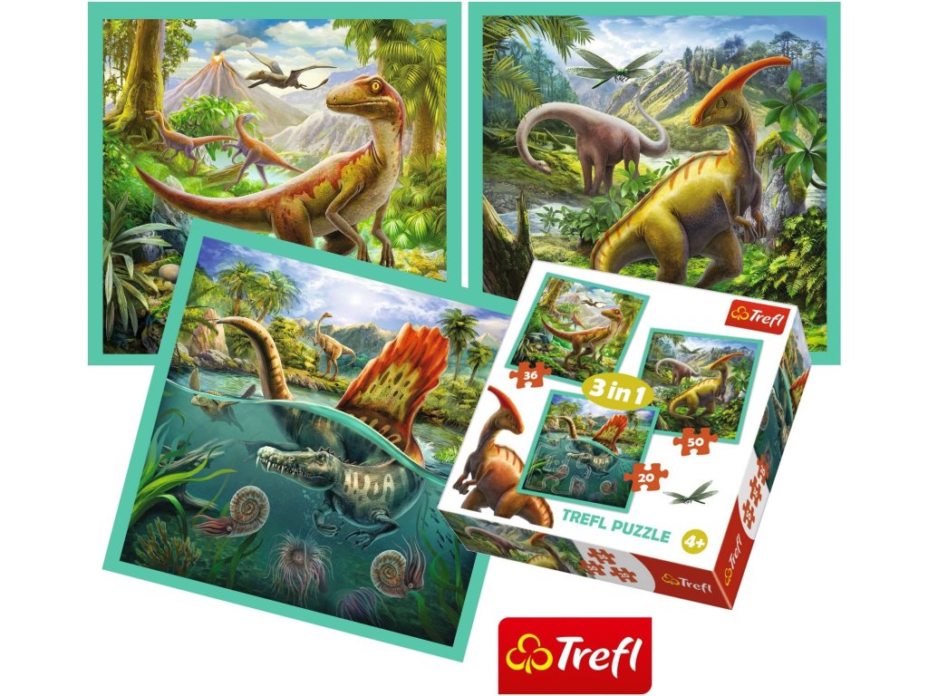 Trefl Puzzle 3v1 Neobyčejný svět dinosaurů 34837 106 prvků