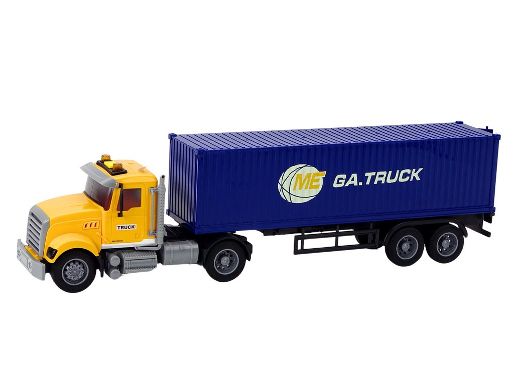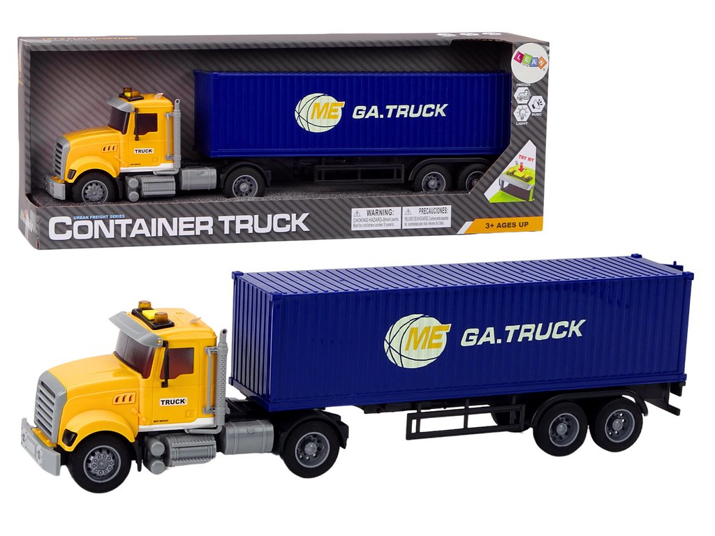 Žlutý kamion s tmavě modrým přívěsem je realisticky ztvárněné vozidlo, které posouvá zábavu na zcela novou úroveň. Díky jeho detailnímu vzhledu si děti připadají jako skuteční řidiči kamionů, což rozvíjí jejich představivost a vypravěčské schopnosti. Náklaďák je vybaven světelnými a zvukovými efekty, které napodobují zvuky skutečných náklaďáků, jako je zvuk motoru, klaksonu nebo zvuk při couvání, což dodává hře na realističnosti a interakci.
