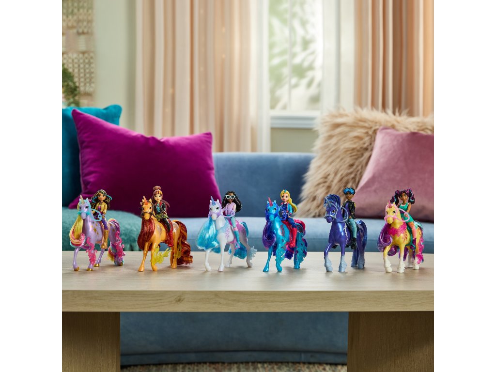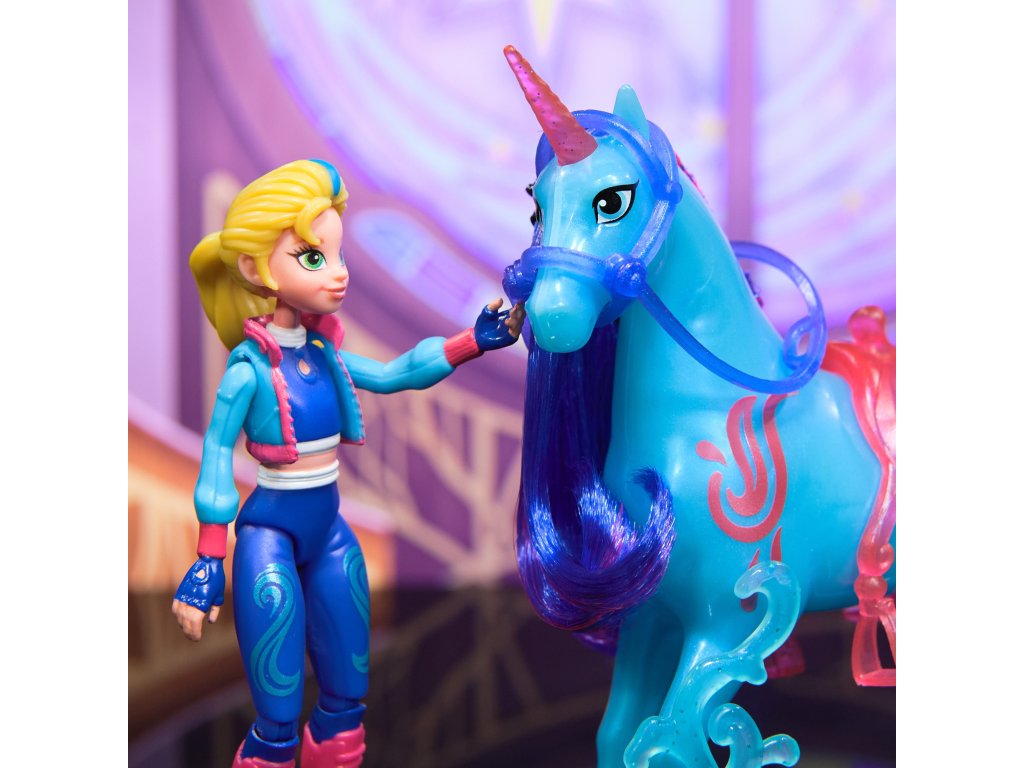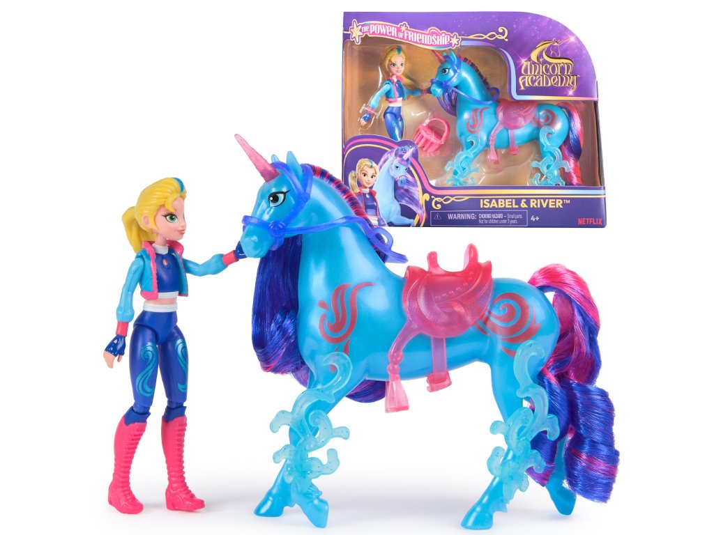 Inspirováno milovaným animovaným seriálem Unicorn Academy . V této magické škole se mladí hrdinové učí rozvíjet jedinečné schopnosti svých jednorožců, upevňovat přátelství a čelit jedinečným výzvám. Tato sada s panenkou Isabel a jejím věrným jednorožcem Riverem umožňuje dětem vstoupit do světa Sparkle Lake a znovu si vytvořit svá oblíbená dobrodružství ze série nebo vytvořit své vlastní nápadité příběhy.