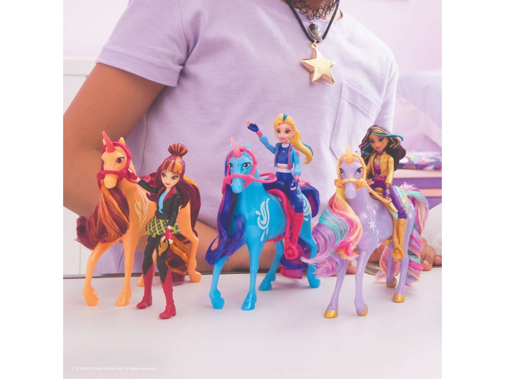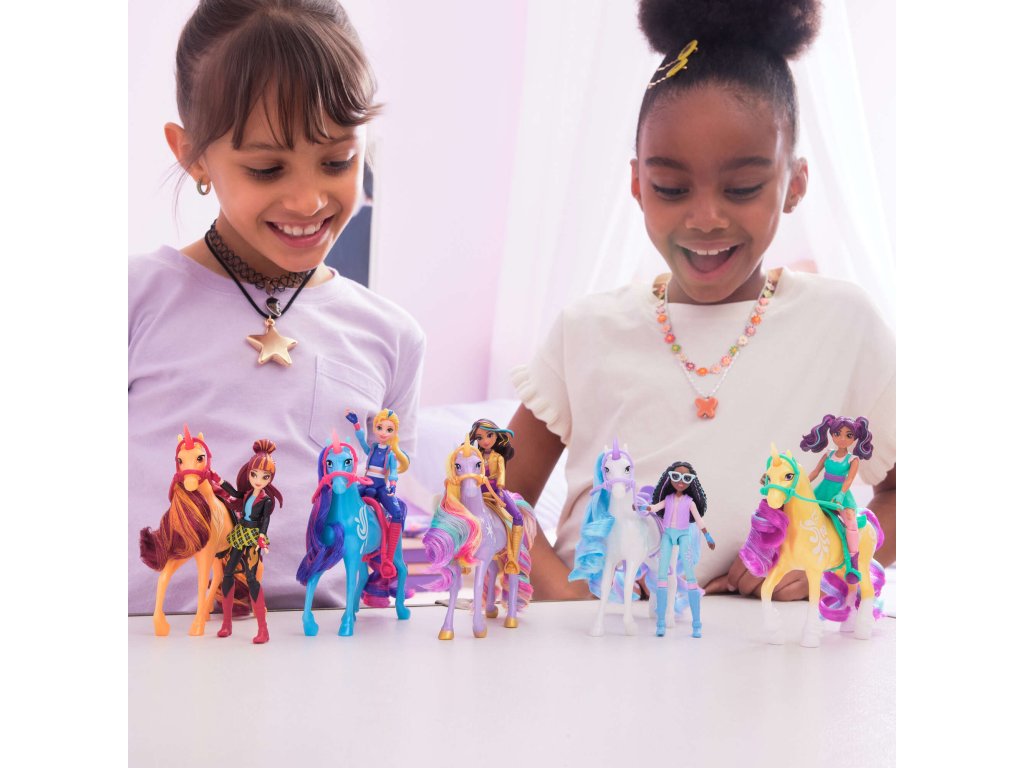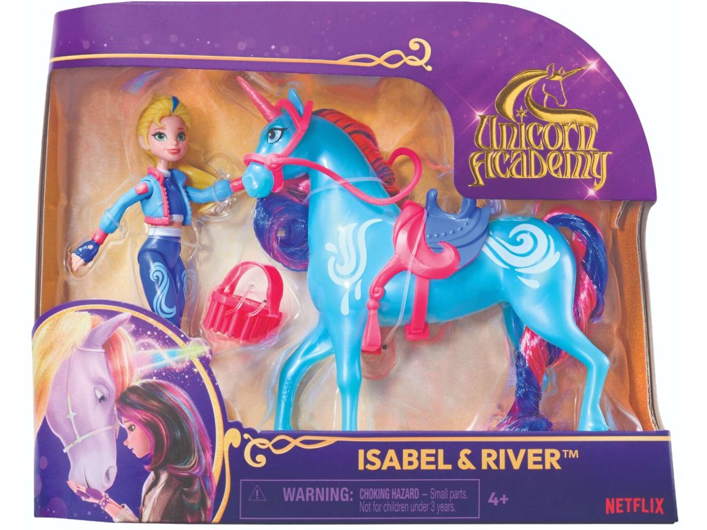 Inspirováno milovaným animovaným seriálem Unicorn Academy . V této magické škole se mladí hrdinové učí rozvíjet jedinečné schopnosti svých jednorožců, upevňovat přátelství a čelit jedinečným výzvám. Tato sada s panenkou Isabel a jejím věrným jednorožcem Riverem umožňuje dětem vstoupit do světa Sparkle Lake a znovu si vytvořit svá oblíbená dobrodružství ze série nebo vytvořit své vlastní nápadité příběhy.