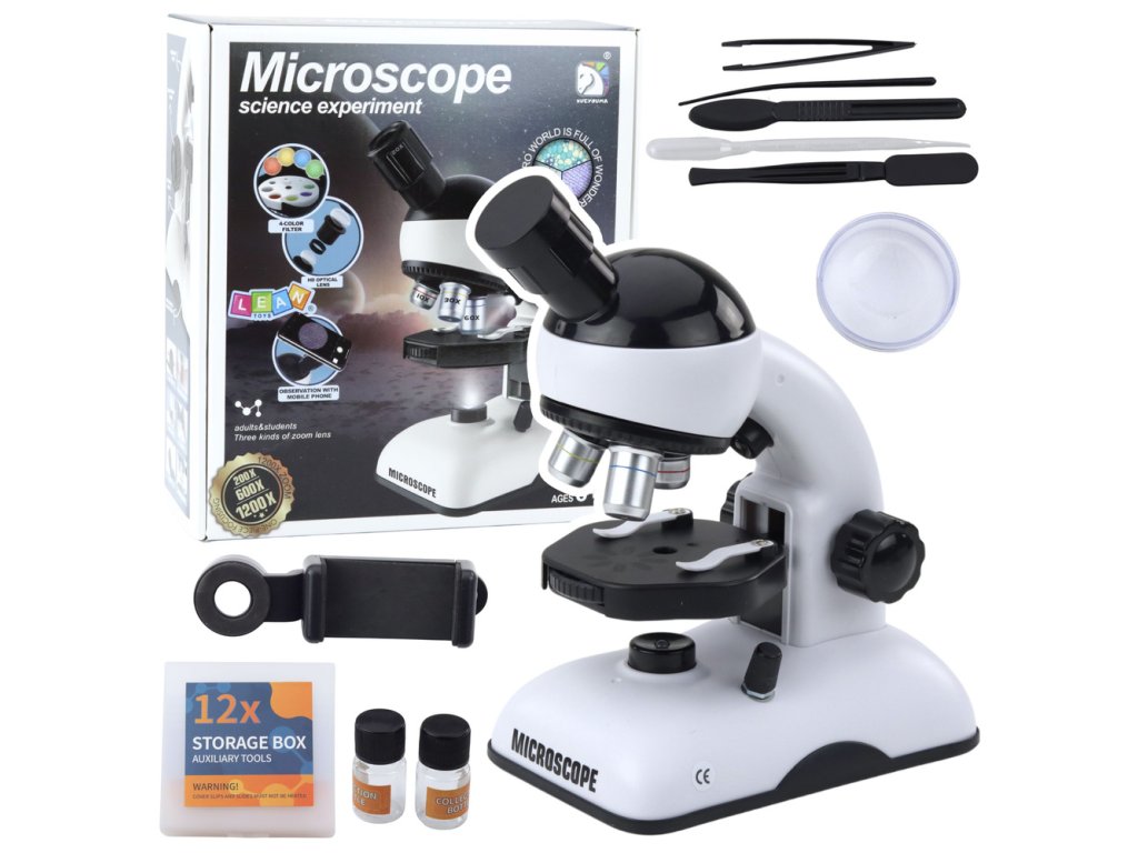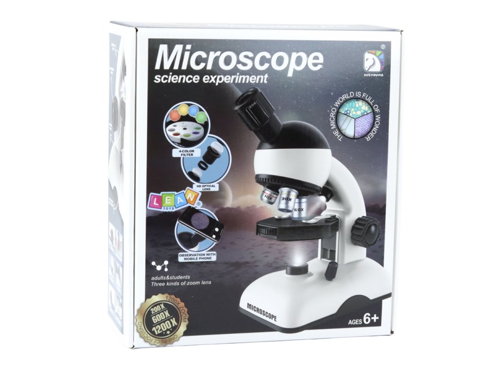 Tento mimořádný vzdělávací mikroskop je perfektním nástrojem pro mladé průzkumníky a vědecké nadšence. Nabízí tři úrovně zvětšení - 200x, 600x a až 1200x, díky čemuž umožňuje přesné zkoumání mikroskopických struktur a detailů pouhým okem neviditelných. Jde o kompletní laboratoř na dosah ruky, která vám umožní prozkoumat fascinující mikrosvět.