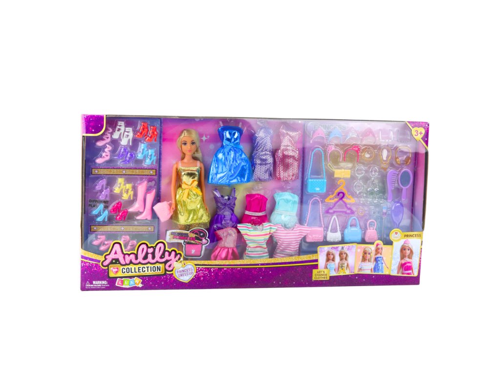 Panenka Anlily se svou výjimečně rozsáhlou sadou oblečení a doplňků je ideální pro každou dívku, která sní o hře na stylistku, módní návrhářku nebo modelku. Sada obsahuje elegantní panenku s dlouhými blond vlasy, oblečenou v třpytivých zlatých šatech a devět dalších šatiček v různých stylech a barvách, které umožňují vytvářet každý den nový vzhled a módní kombinace. Různorodost outfitů skýtá nekonečný prostor pro dětskou fantazii – od plesových šatů a letních šatů až po styly inspirované pohádkami a každodenní módou.