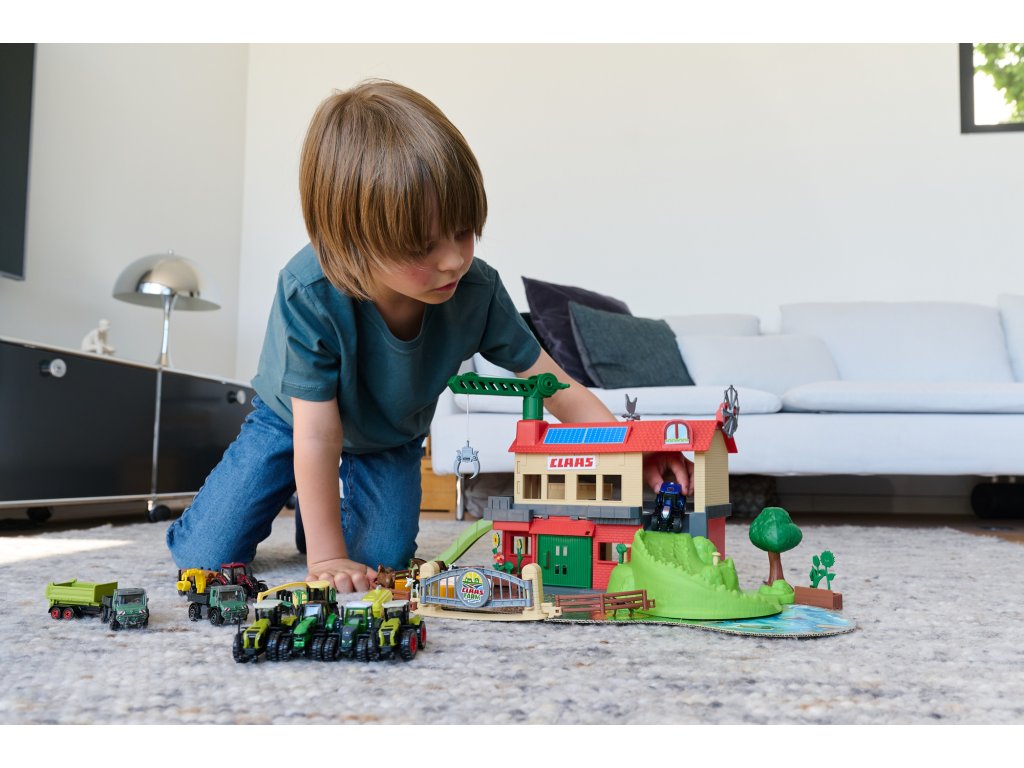 Claas Farmyard je komplexní sada pro milovníky farem a zemědělských vozidel, která jim umožňuje zopakovat každodenní farmářskou práci. Sada obsahuje tři farmářská vozidla v oficiálním Claas stylu , četná zvířata a herní prvky, jako je stodola, rampy a jeřáb . Dvě úrovně hry přidávají prostor a realismus a různé funkce umožňují uspořádání farmy mnoha způsoby.