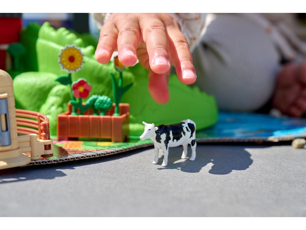 Farmářské prvky, jako jsou traktory a přívěs, mají pohyblivá kola a lze je snadno přemisťovat po sadě – což dětem umožňuje realisticky simulovat přepravu a pohyb po farmě.