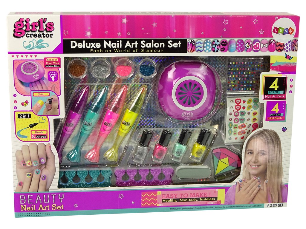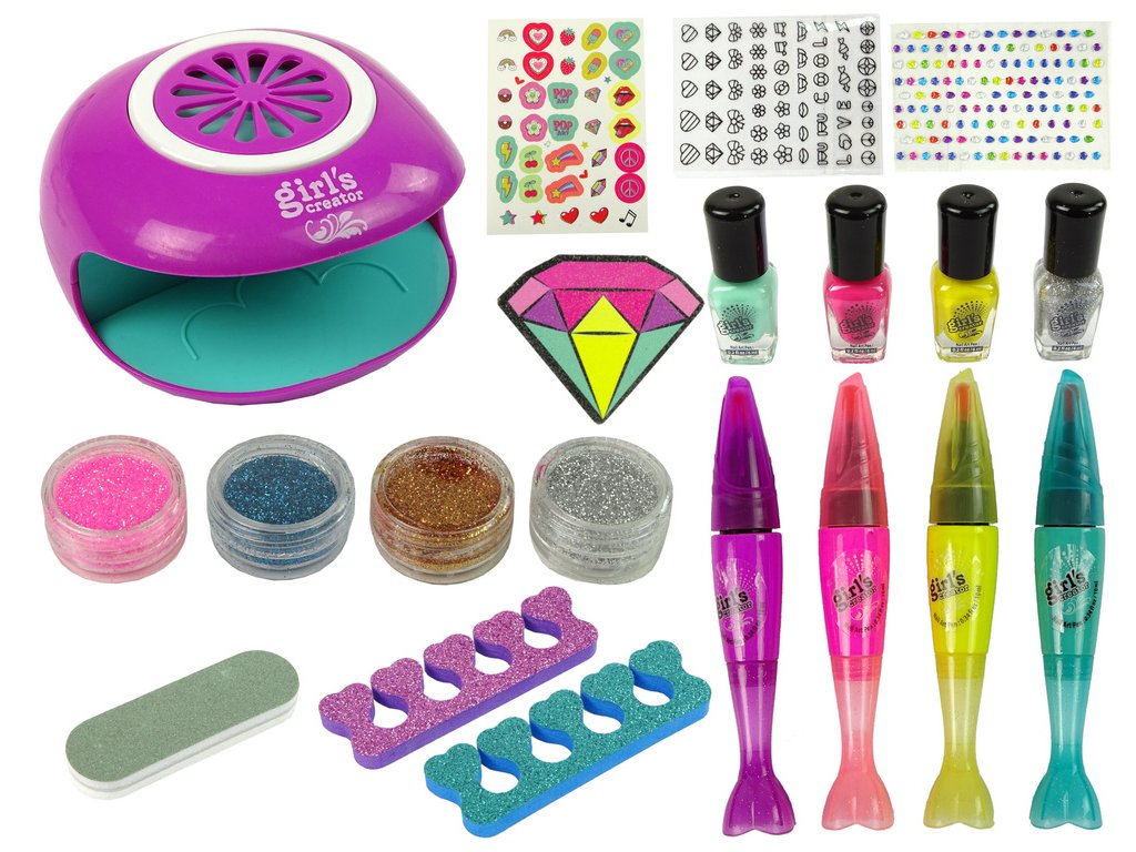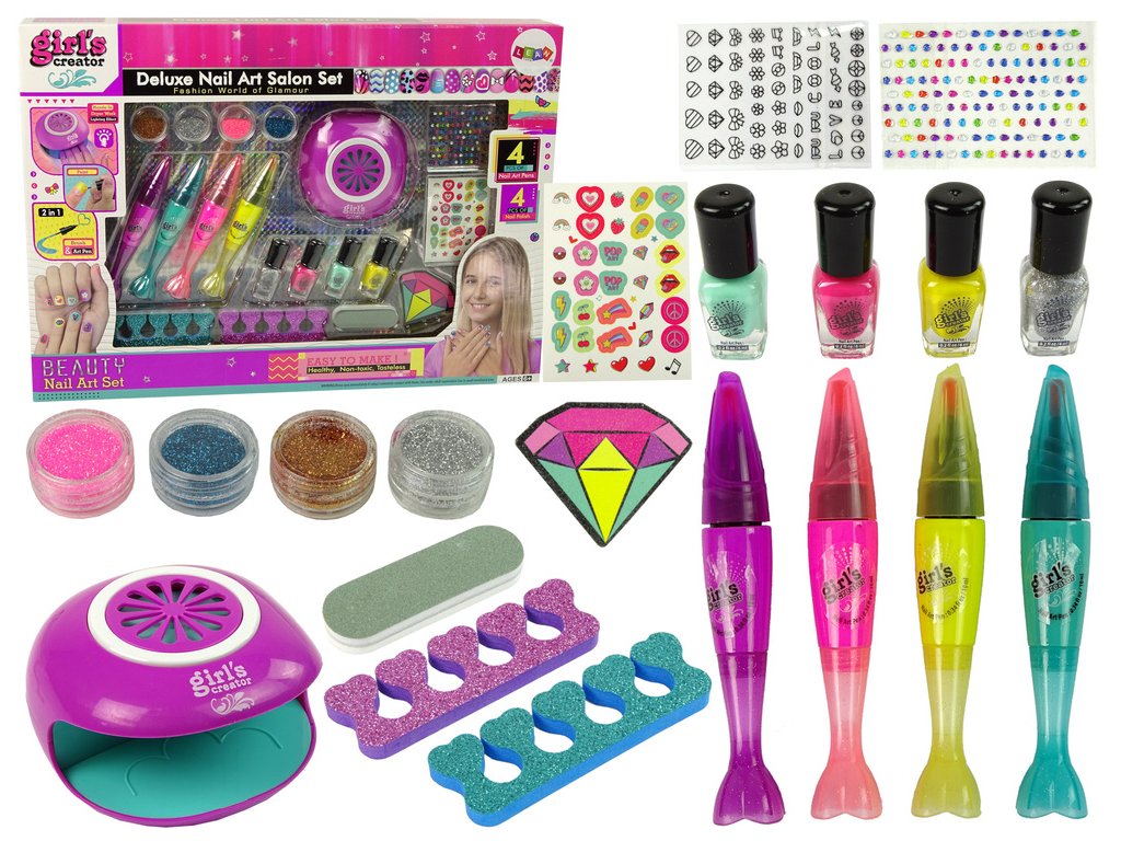 Velká sada na lakování nehtů Sušička s třpytivými samolepkami na nehty