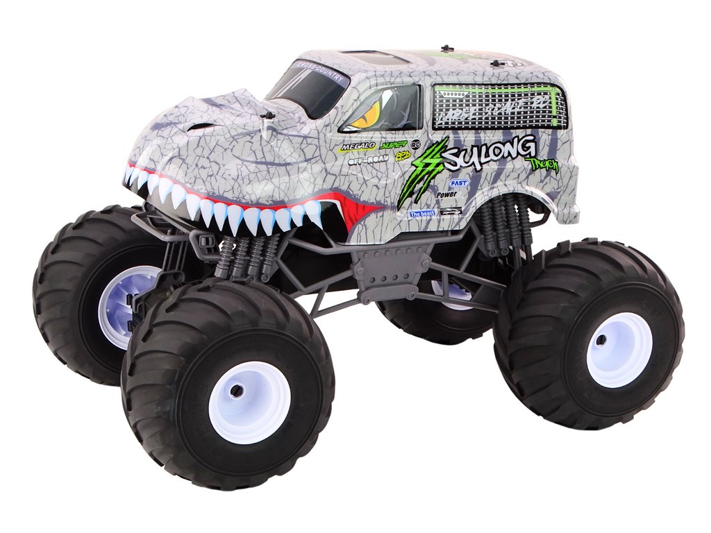 Působivé obrovské terénní auto s motivem dinosaura je snem každého fanouška vozidel na dálkové ovládání a prehistorických tvorů! Je postaveno v měřítku 1-6 a působí majestátně jak na uživatele, tak na pozorovatele.