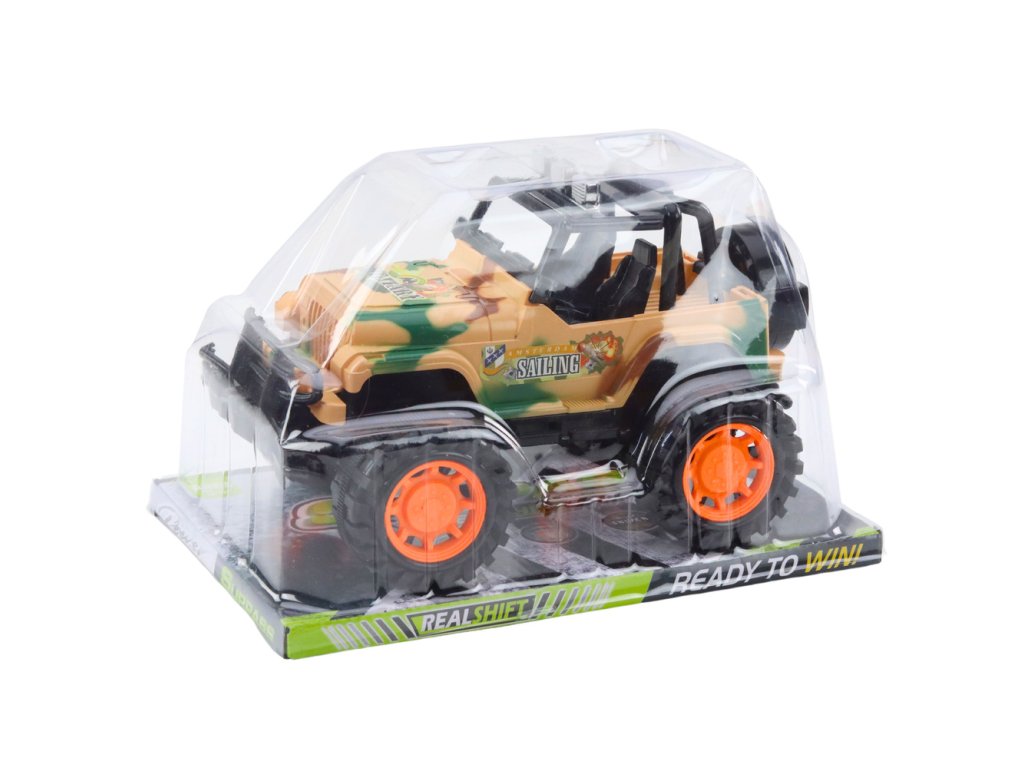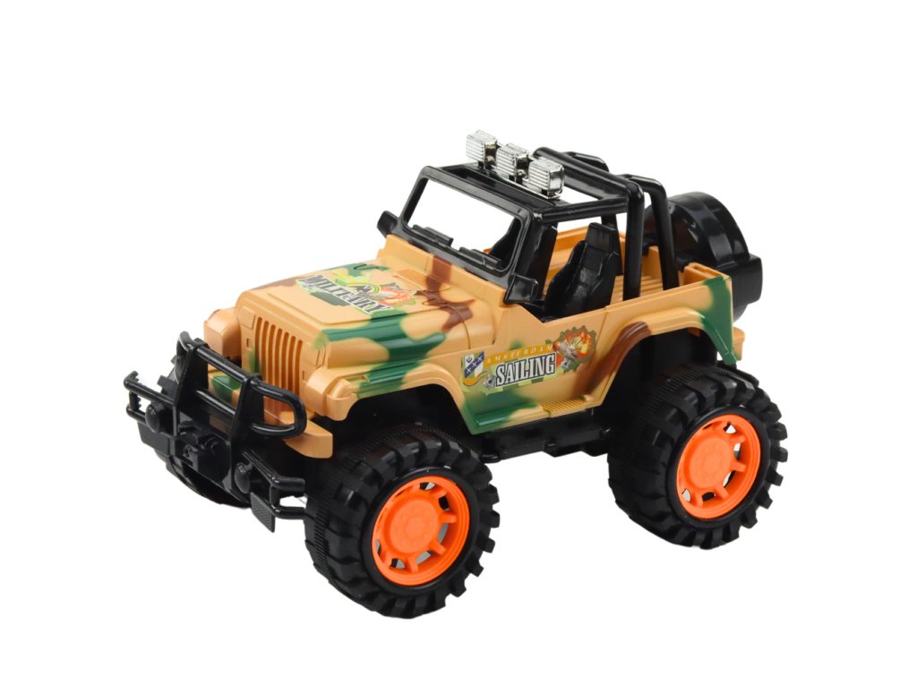 Karoserie ve vojenských barvách s potisky ve stylu survival přitahuje pozornost a zdůrazňuje terénní charakter vozidla. Díky velkým odolným kolům s běhounem auto dobře drží na zemi, což zajišťuje stabilitu při jízdě. Jedná se o perfektní volbu pro děti, které sní o jízdě v opravdovém terénním vozidle a prozkoumávání náročných tras.