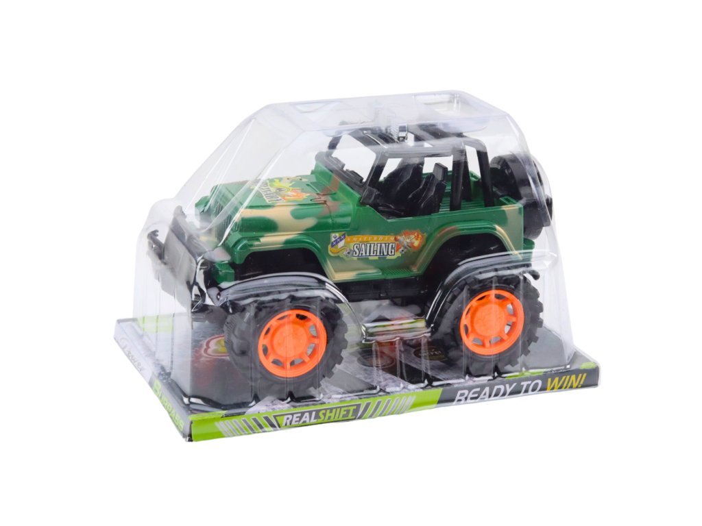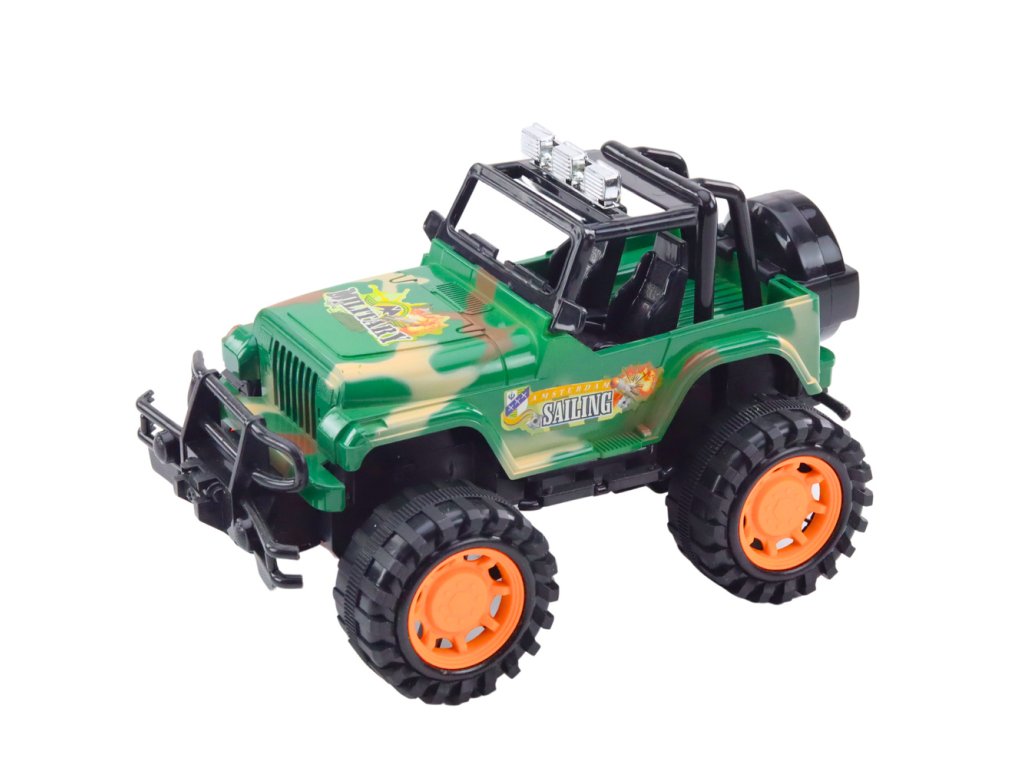 Karoserie ve vojenských barvách s potisky ve stylu survival přitahuje pozornost a zdůrazňuje terénní charakter vozidla. Díky velkým odolným kolům s běhounem auto dobře drží na zemi, což zajišťuje stabilitu při jízdě. Jedná se o perfektní volbu pro děti, které sní o jízdě v opravdovém terénním vozidle a prozkoumávání náročných tras.