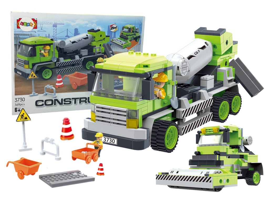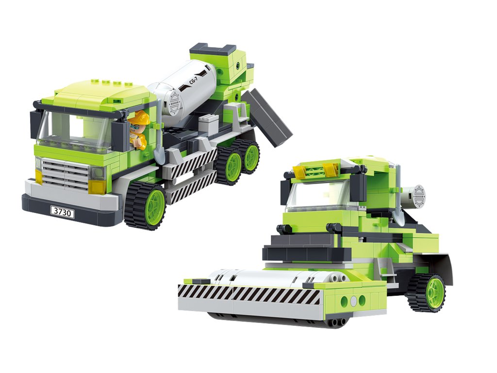 Celá sada obsahuje 369 dílků vyrobených z bezpečných a certifikovaných materiálů. Kostky jsou pevné a velmi snadno se skládají. Barevné pokyny vám pomohou sestavit stavební vozidla krok za krokem. Můžete si ji přidat jako novou sadu do své sbírky. Seznamte se s konstrukcí velkých stavebních strojů v procesu montáže a zažijte zábavu s výkonem.