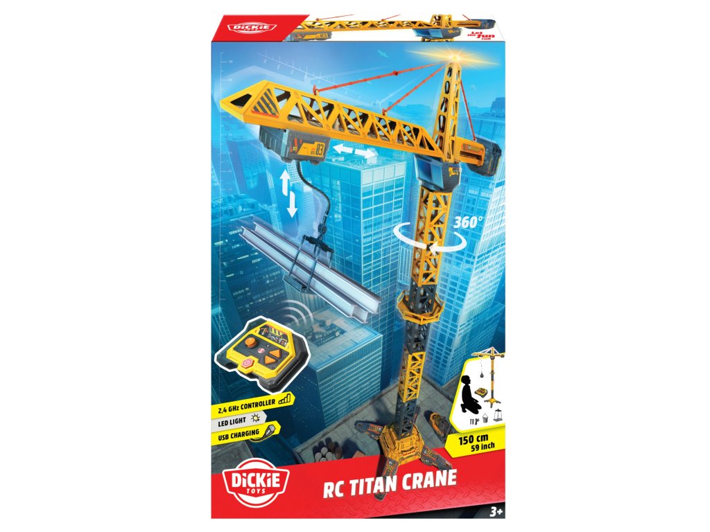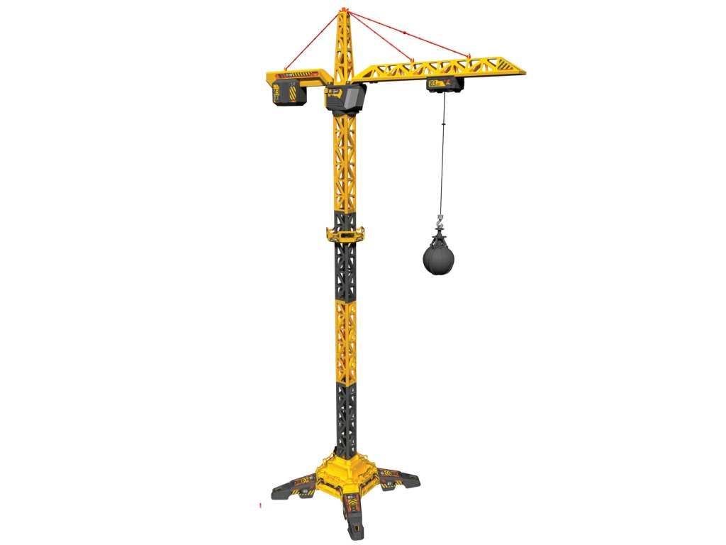 Dálkové ovládání umožňuje přesné ovládání funkcí jeřábu a pohyblivé části přidávají na realismu. Nabíjí se pomocí extra dlouhého USB kabelu a poskytuje dětem až 120 minut hraní. Kontrolka nahoře indikuje úroveň nabití. Díky robustní konstrukci a stabilní základně zajišťuje jeřáb bezpečnou a vzrušující hru i na nerovném povrchu. Děti mohou drapákem zvedat různé předměty, jako je kbelík, nakládací plošina nebo demoliční koule, a přemisťovat je z místa na místo a zároveň rozvíjet svou fantazii a jemnou motoriku.